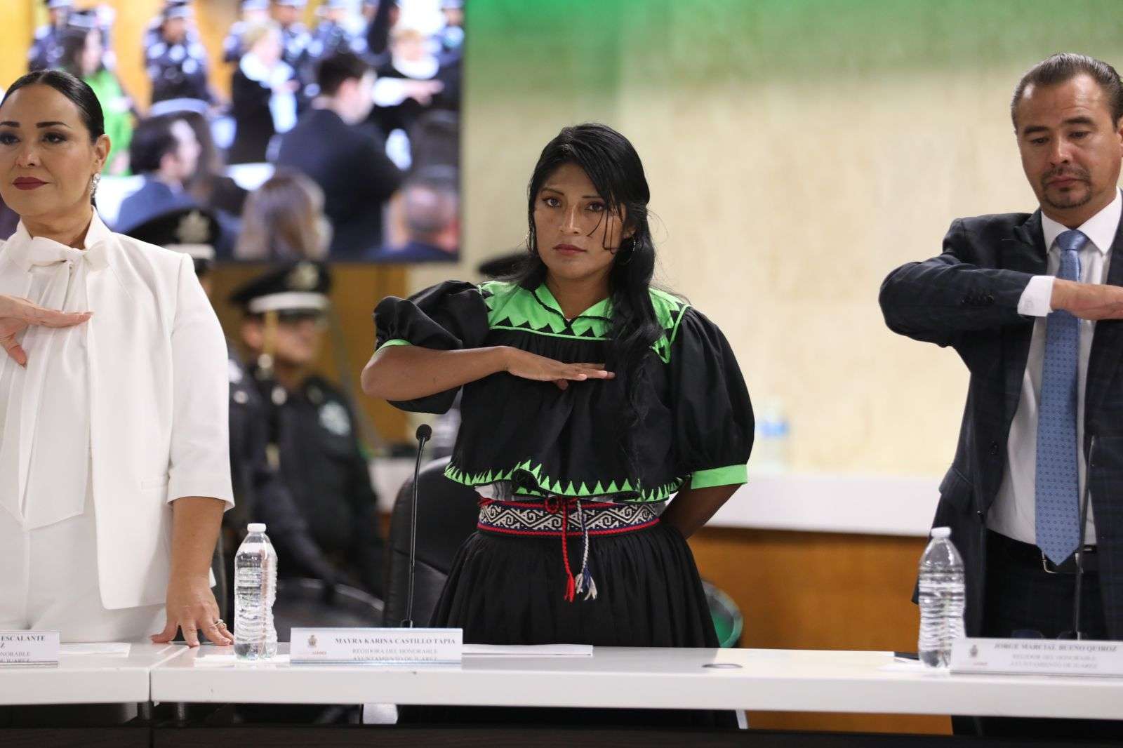 La sesión dio inicio con los honores a la bandera por parte de la Banda de Guerra y Escolta de la Secretaría de Seguridad Pública Municipal (SSPM) y posteriormente se hizo pase de lista a quienes ahora integran el Cabildo.