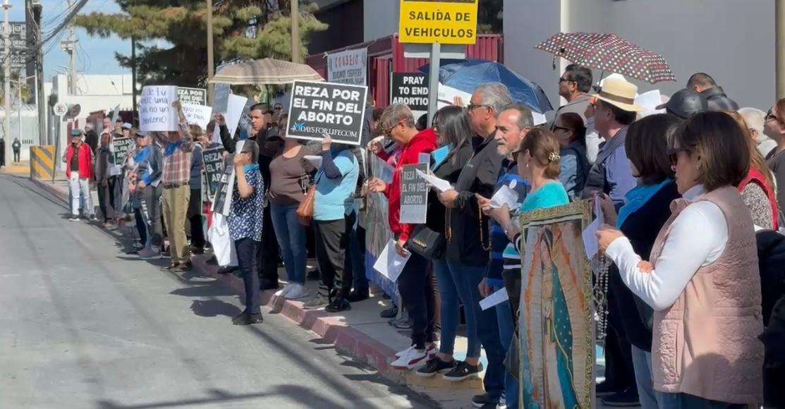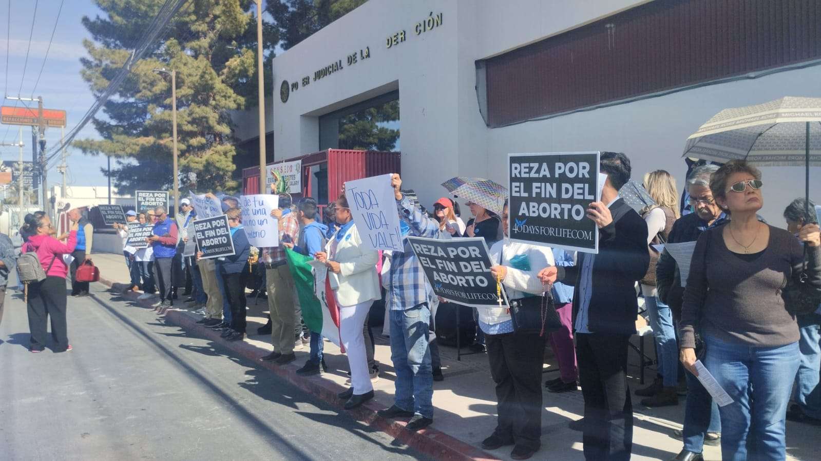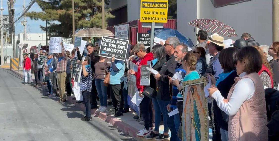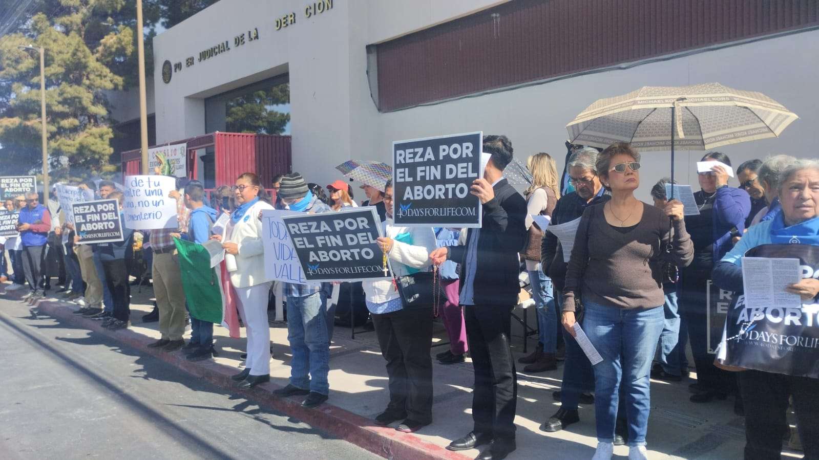 Ciudad Juárez.- Ciudadanas y ciudadanos integrantes de la Diócesis de Ciudad Juárez se manifestaron afuera de las oficinas del Poder Judicial de la Federación por la recién despenalización del aborto en Chihuahua.