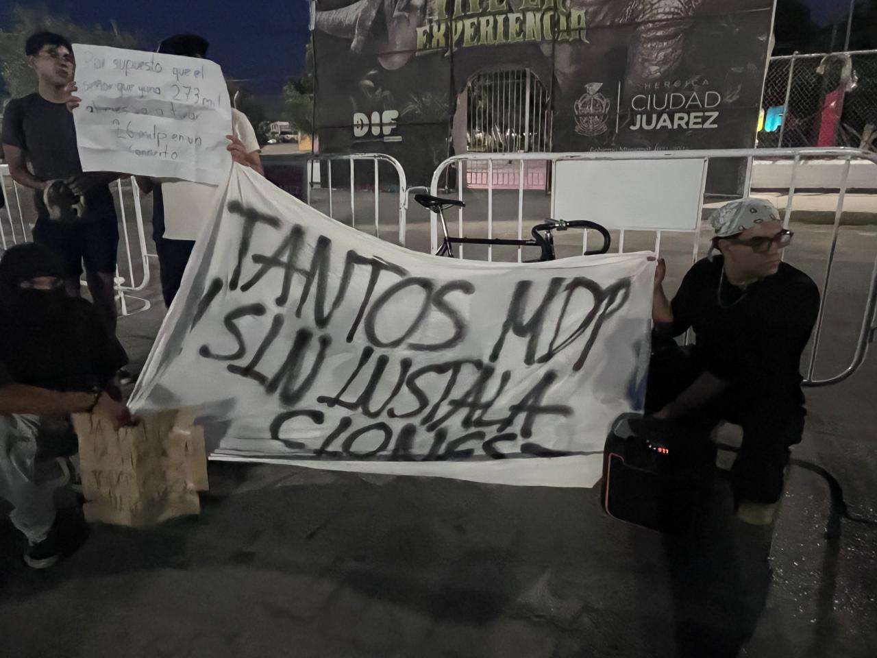 Ciudad Juárez.- Integrantes del Frente Unido de la UACJ se manifestaron este jueves en rechazo al concierto millonario de Alejandro Fernández, financiado en parte por la Universidad Autónoma de Ciudad Juárez (UACJ) y el Gobierno Municipal, al considerar que el presupuesto debió destinarse a necesidades urgentes dentro de la institución.