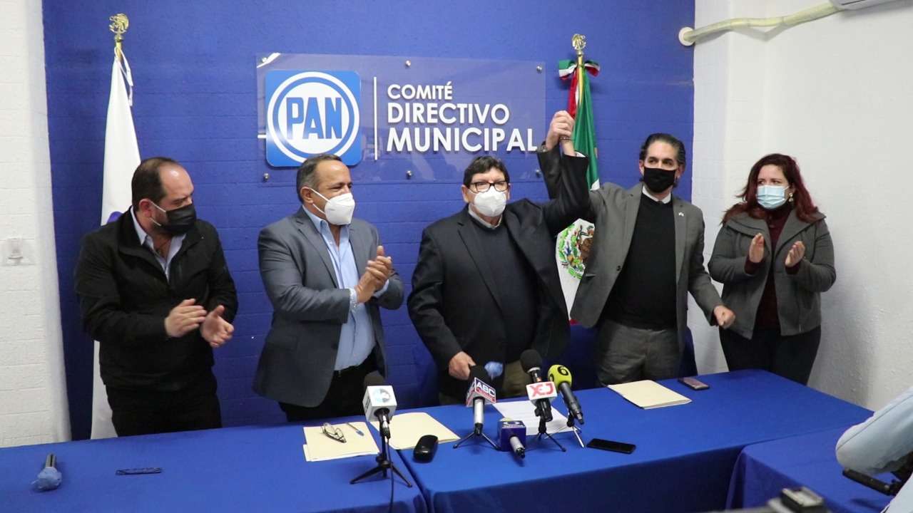 En el acto de registro ante Jesús Tarín, presidente de la Comisión Organizadora Electoral y de Job Quintin Flores, presidente del Comité Municipal del PAN, el abogado oficializó como compañero de fórmula a Raúl García Ruiz.