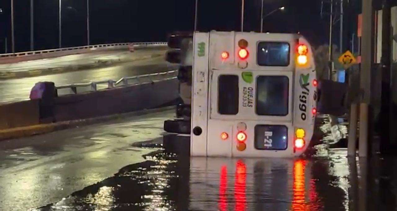 Debido a que el pavimento estaba mojado y circulaba a exceso de velocidad el camión se volcó.