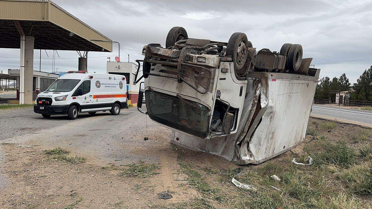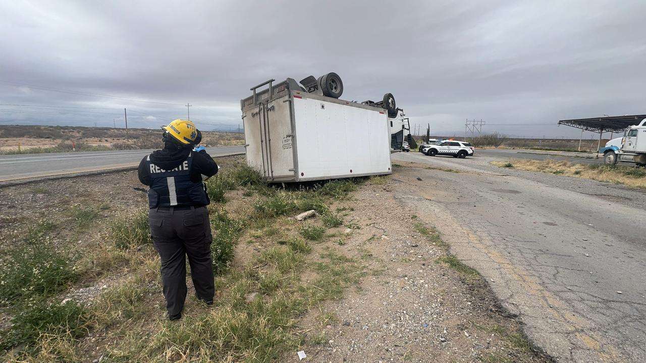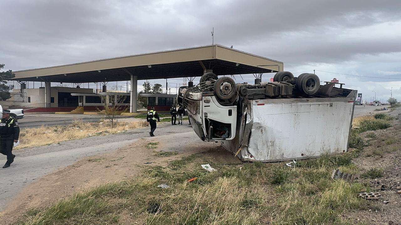 Ciudad Juárez.- Un camión de carga que venía de Chihuahua a Juárez se volcó a la altura de la garita del Kilómetro 30 de la carretera Panamericana.