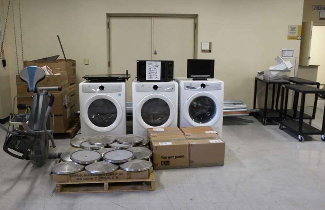 Entre los bienes disponibles destacan electrodomésticos como lavadoras, secadoras, estufas, refrigeradores y lavatrastes, además de computadoras, mobiliario para el hogar y maquinaria diversa.