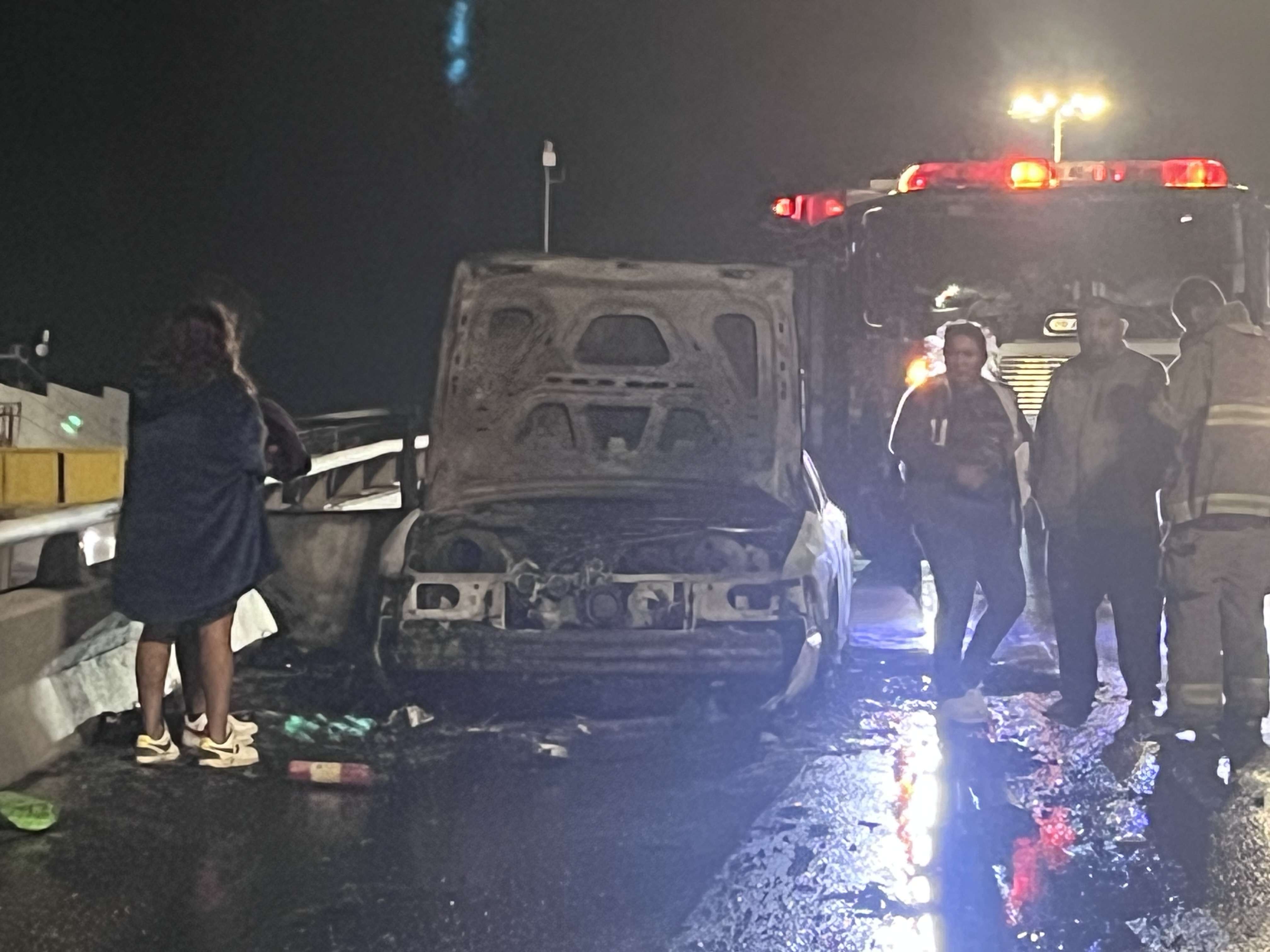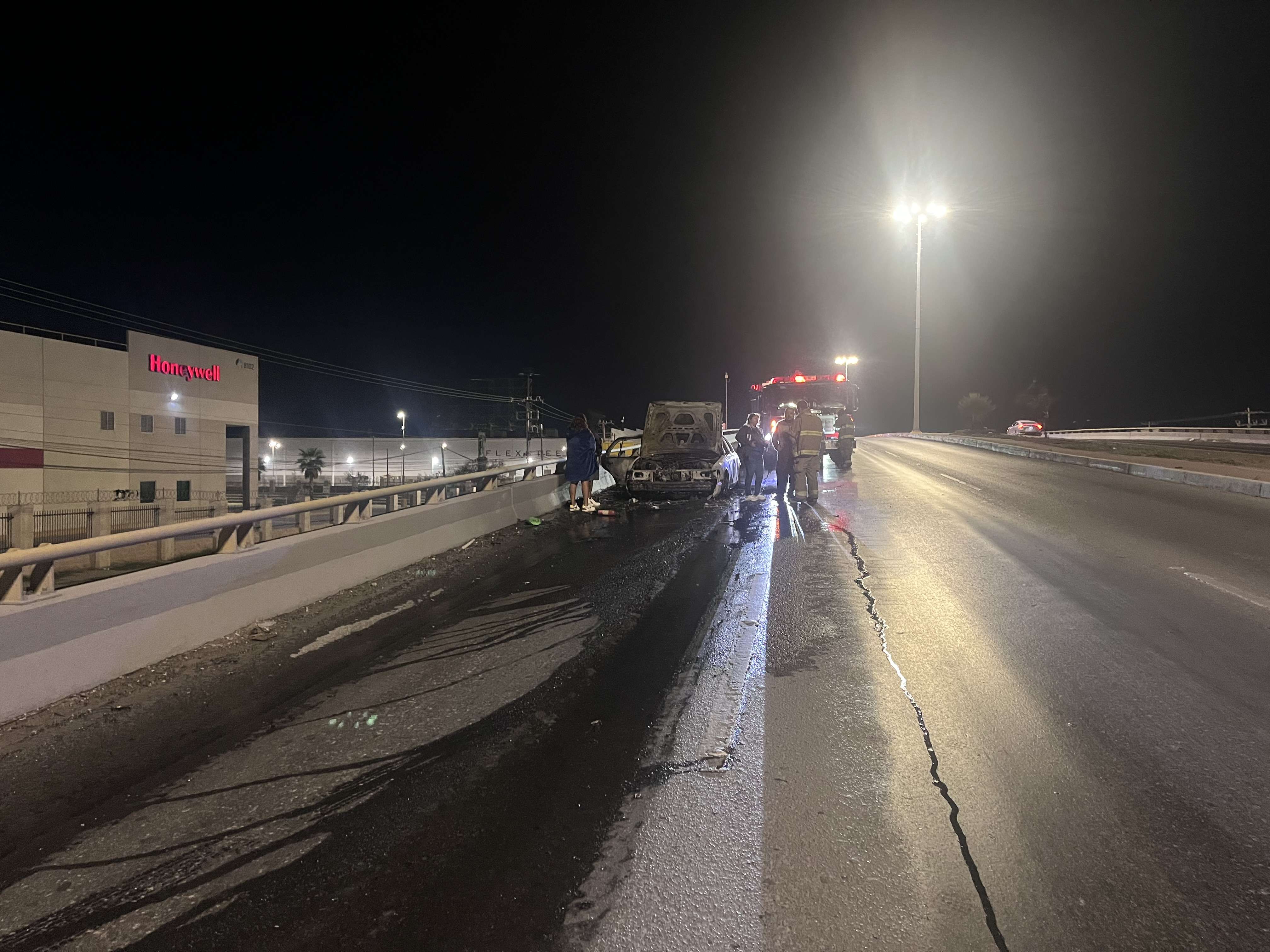De acuerdo con los primeros reportes, el hombre notó que del área del motor salían llamas, por lo que de inmediato decidió orillarse sobre un puente ubicado en el lugar, logrando descender a tiempo antes de que el fuego se propagara.