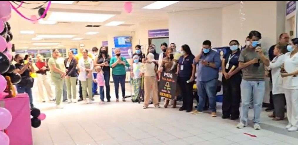 -Entre lágrimas, aplausos y globos de colores, médicos y familiares celebraron el triunfo de Mía, una niña de 8 años que culminó su tratamiento contra el cáncer, símbolo de esperanza para otros pacientes
