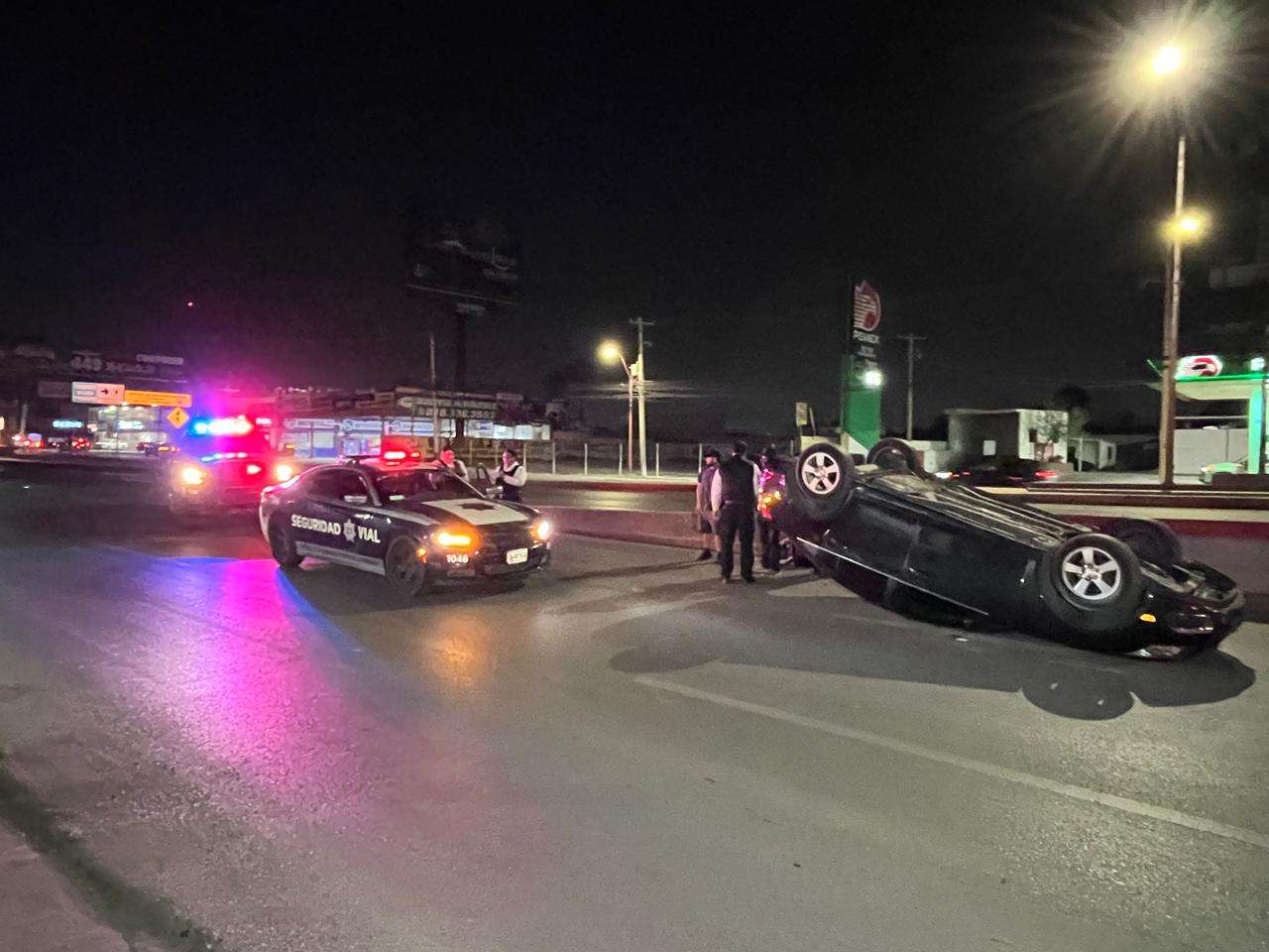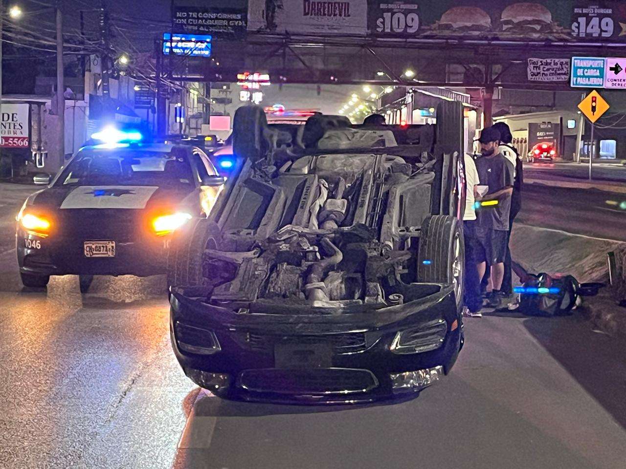 Ciudad Juárez.- Un conductor adulto volcó su vehículo luego de impactarse contra el muro de un puente cuando circulaba por la avenida Tecnológico, en dirección de sur a norte, casi al llegar al cruce con la avenida Insurgentes, a la altura del conocido “puente al revés”.