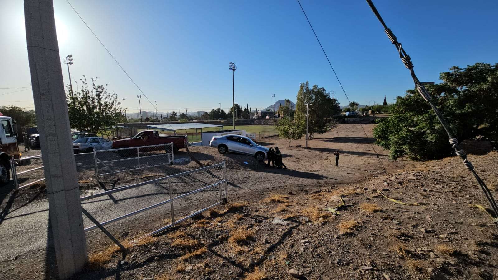 Chihuahua.- Un adulto mayor que acudió al parque de béisbol Zapata, ubicado en la colonia Emiliano Zapata, a realizar ejercicio, estuvo a centímetros de caer por un barranco mientras viajaba a bordo de su vehículo Honda Accord color gris.