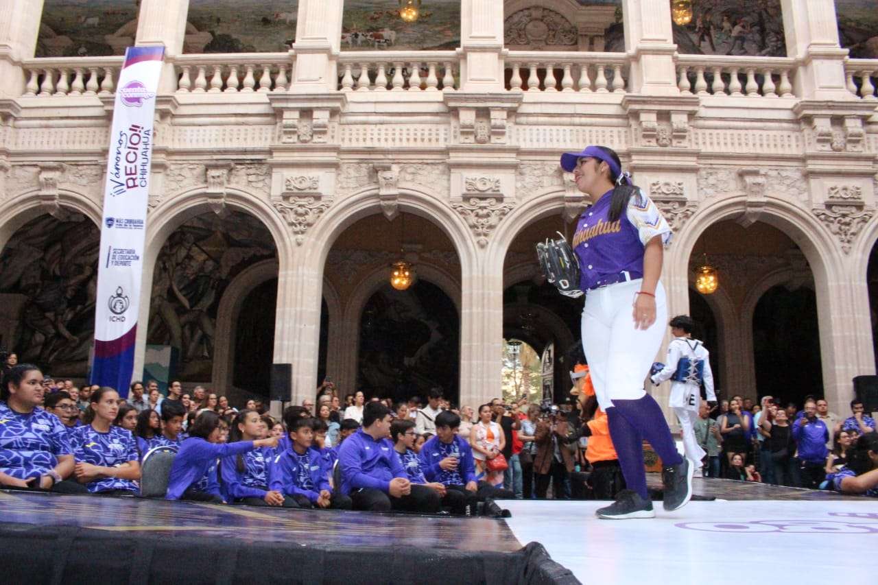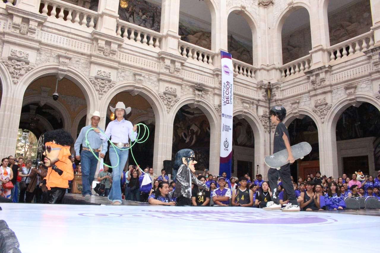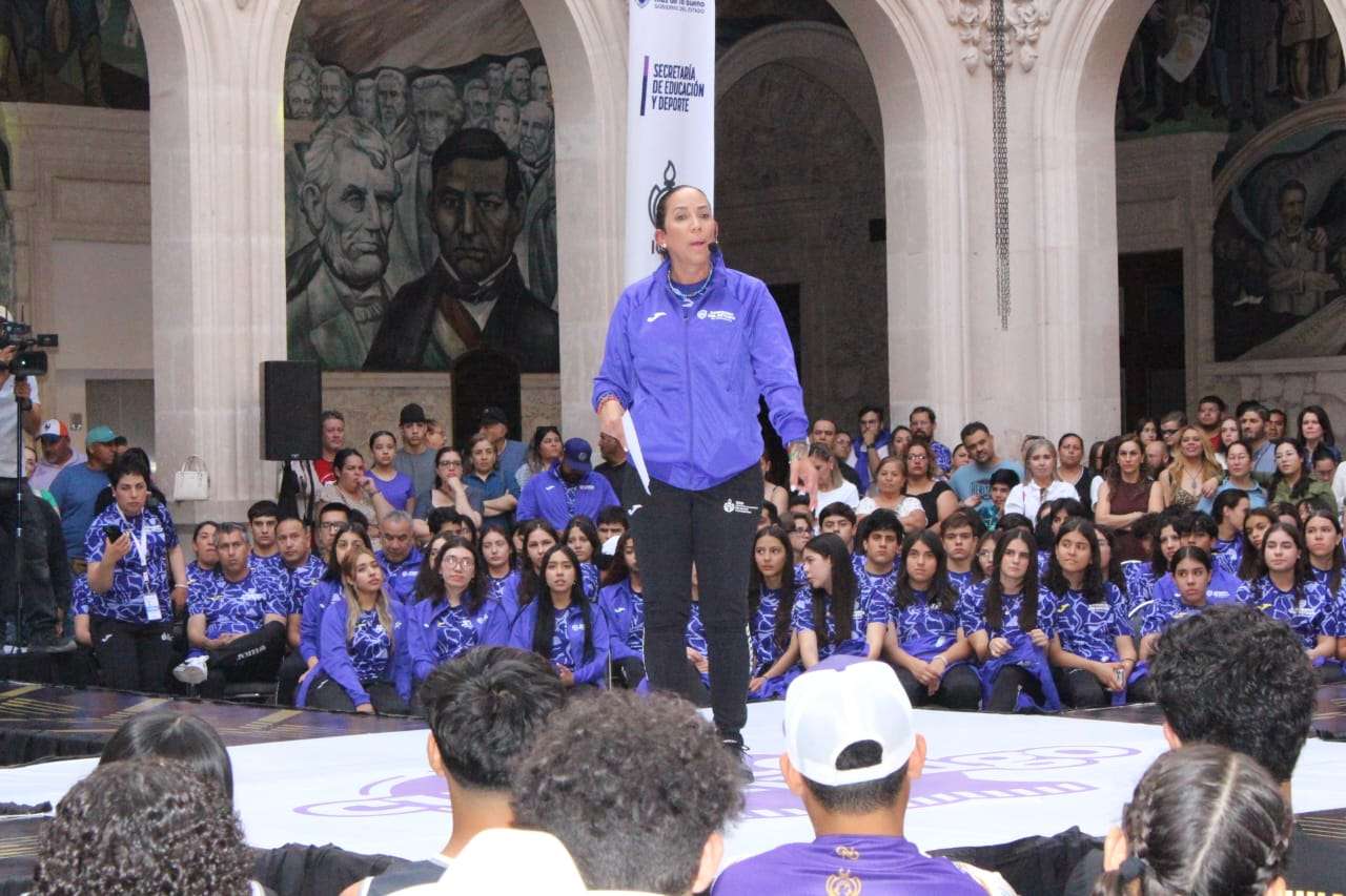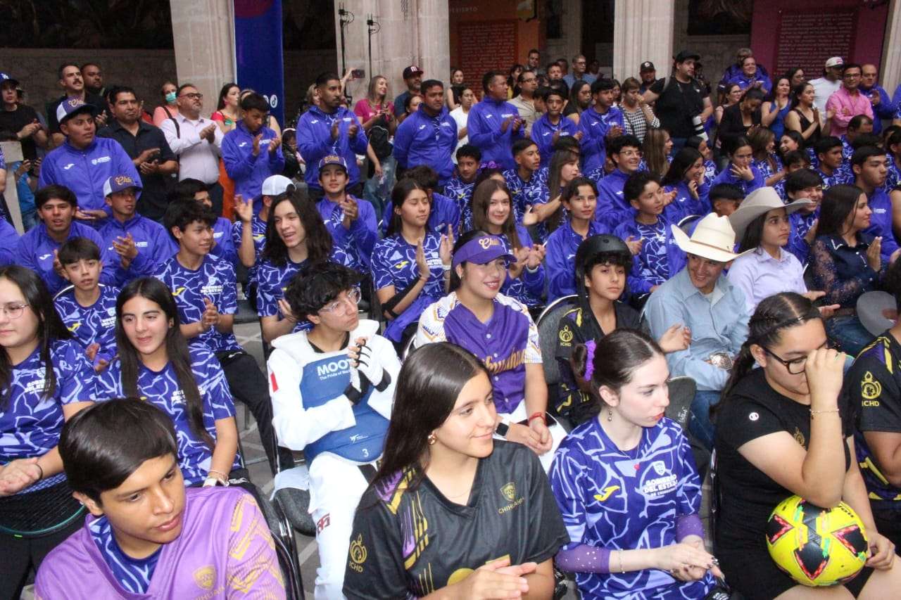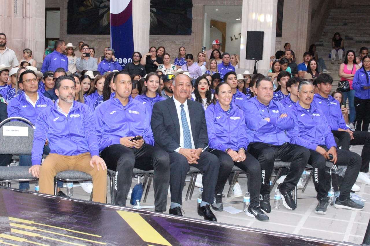 Chihuahua.- Esta tarde, se llevó a cabo el abanderamiento de la delegación chihuahuense para la Olimpiada Nacional 2025, en el Patio Central del Palacio de Gobierno.