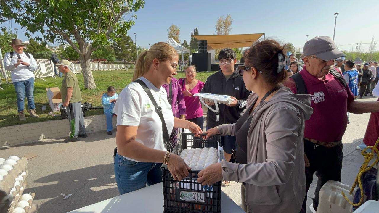 De igual forma, se ofreció la cartera de huevo a 50 pesos y el kilo de frijol a 15 pesos, permitiendo el pago con tarjeta para facilitar las transacciones de los ciudadanos.