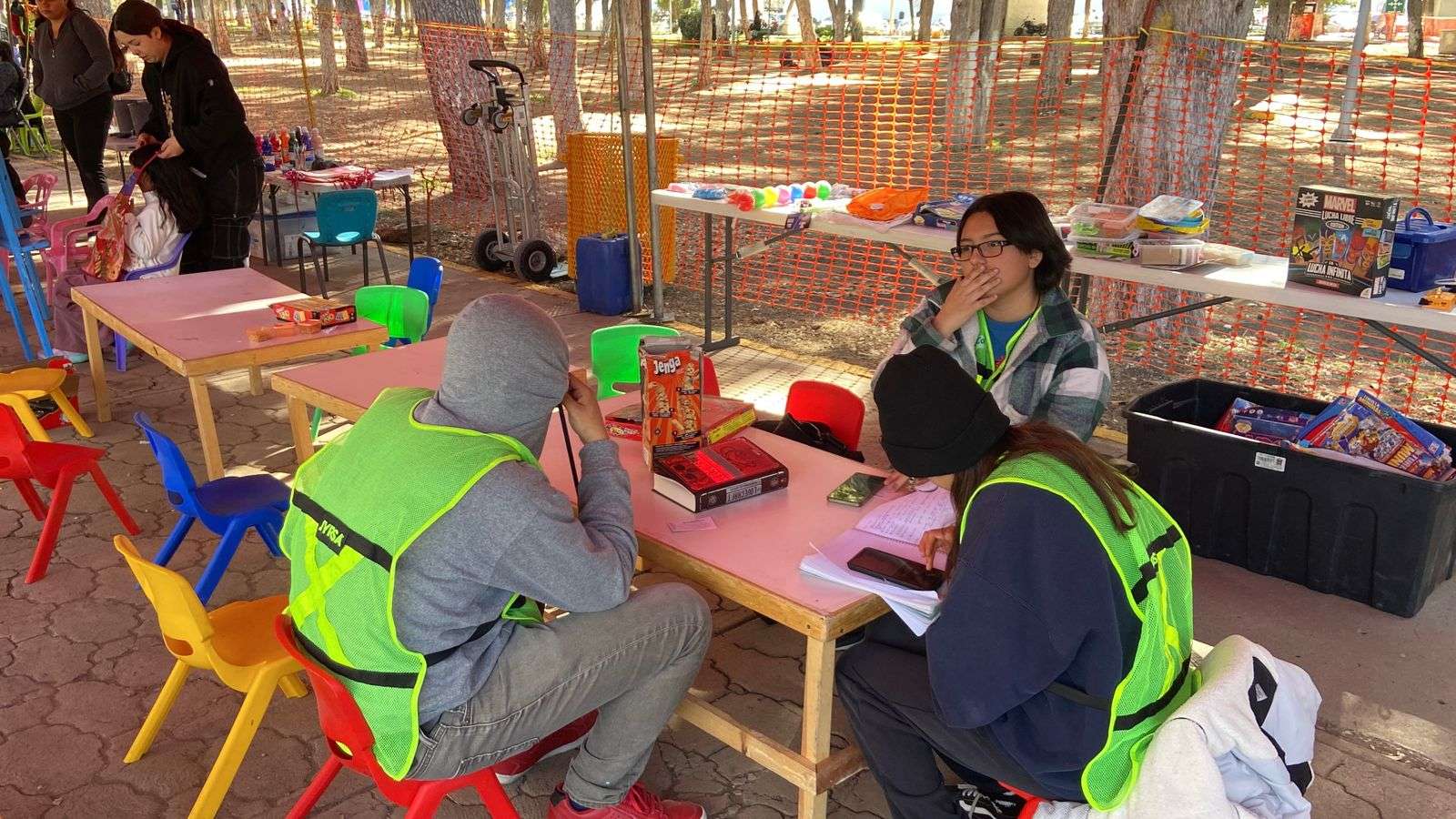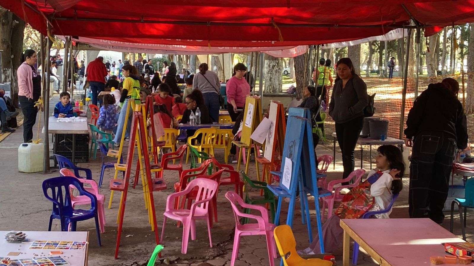 También, pudieron jugar en las canastas, en las mesas de ping-pong, y pudieron con acuarelas pintar dibujos, así como más figuras de yeso.