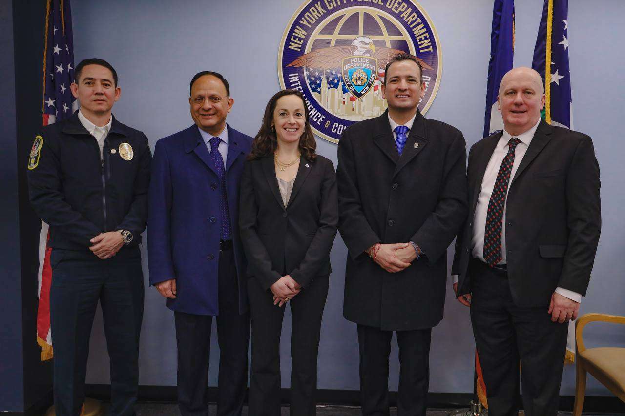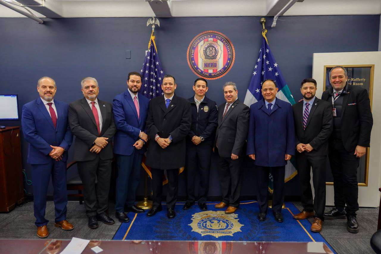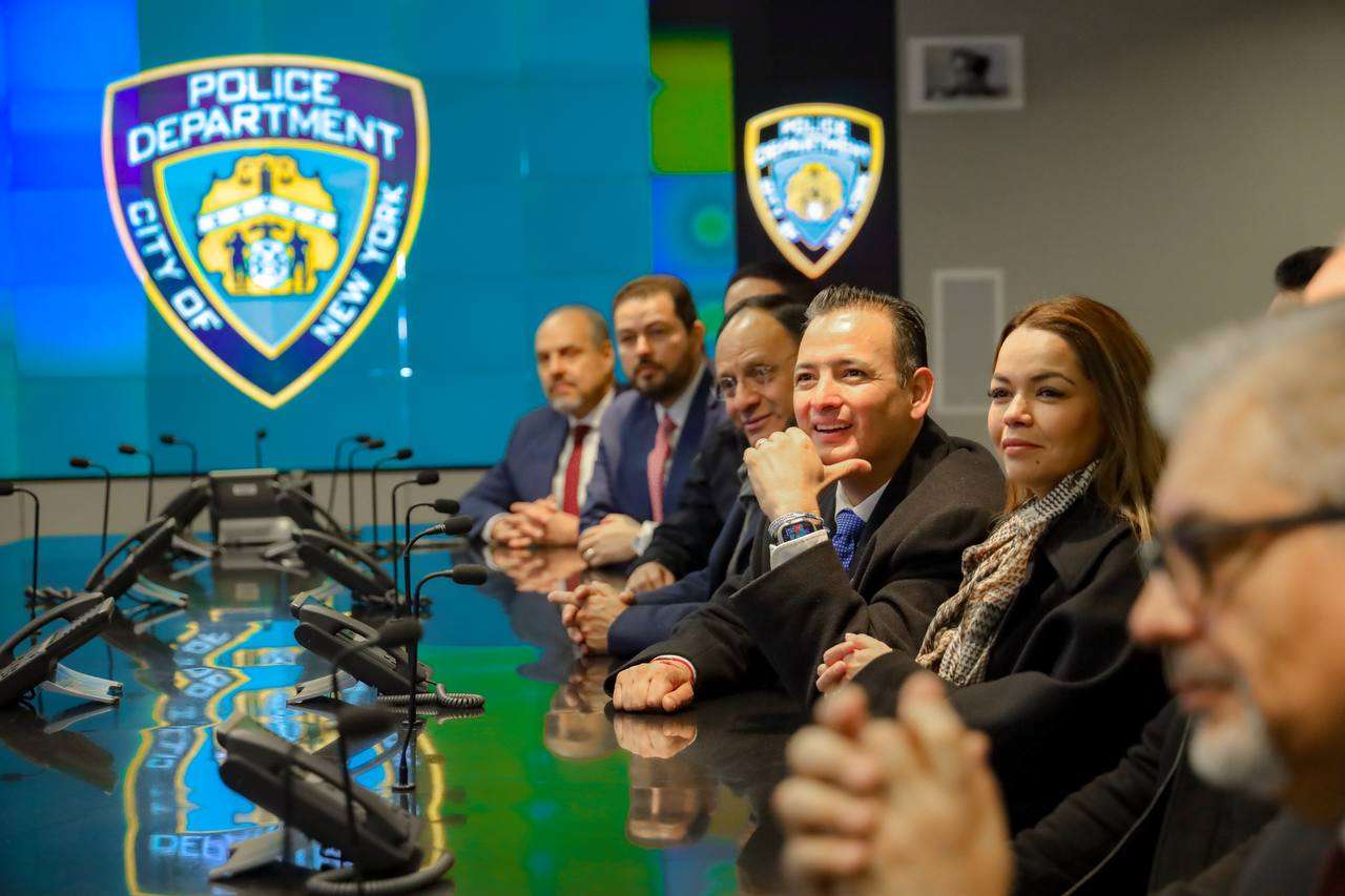 En compañía del director de Seguridad Pública Municipal, Julio Salas, y cónsul general de México en Nueva York, Jorge Islas, así como del oficial de la oficina de asuntos internacionales de la Policía de Nueva York, Luis Franco, se llevó la visita a las instalaciones de este cuerpo policial.