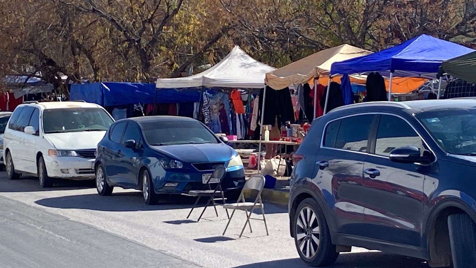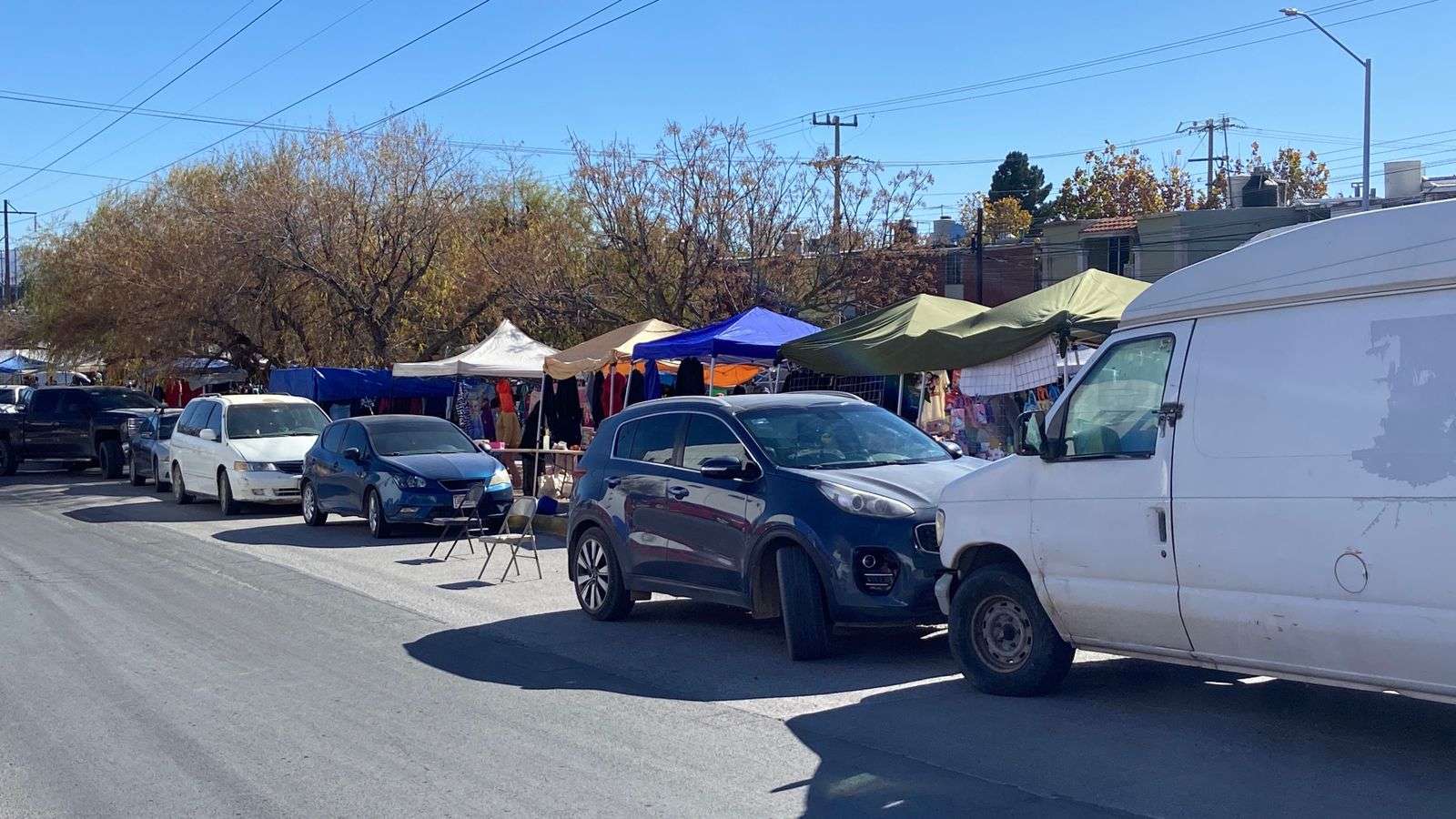 Chihuahua. - Compradores que acuden al tianguis de la colonia Mármol manifestaron su inconformidad ante la práctica de algunos comerciantes que apartan lugares de estacionamiento con objetos como sillas y cajas, impidiendo que los clientes puedan estacionarse cerca del lugar para realizar sus compras.
