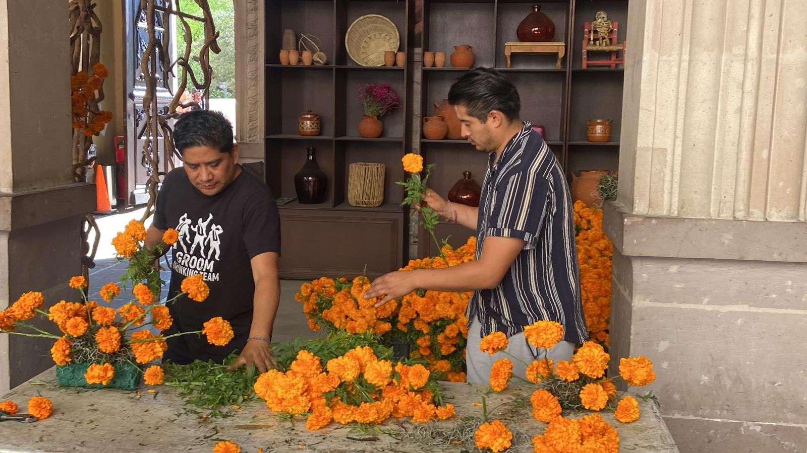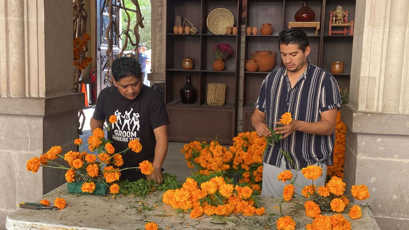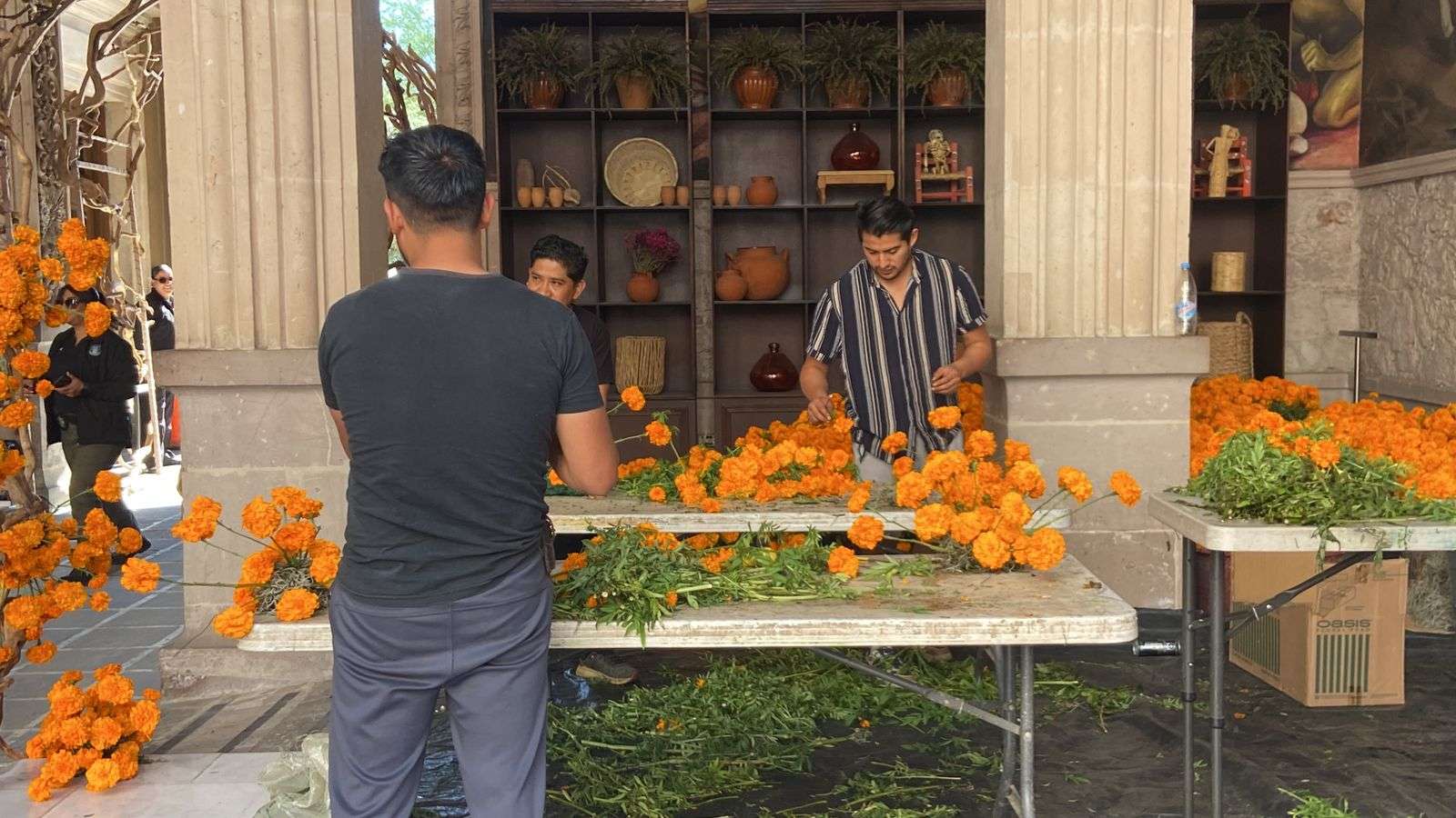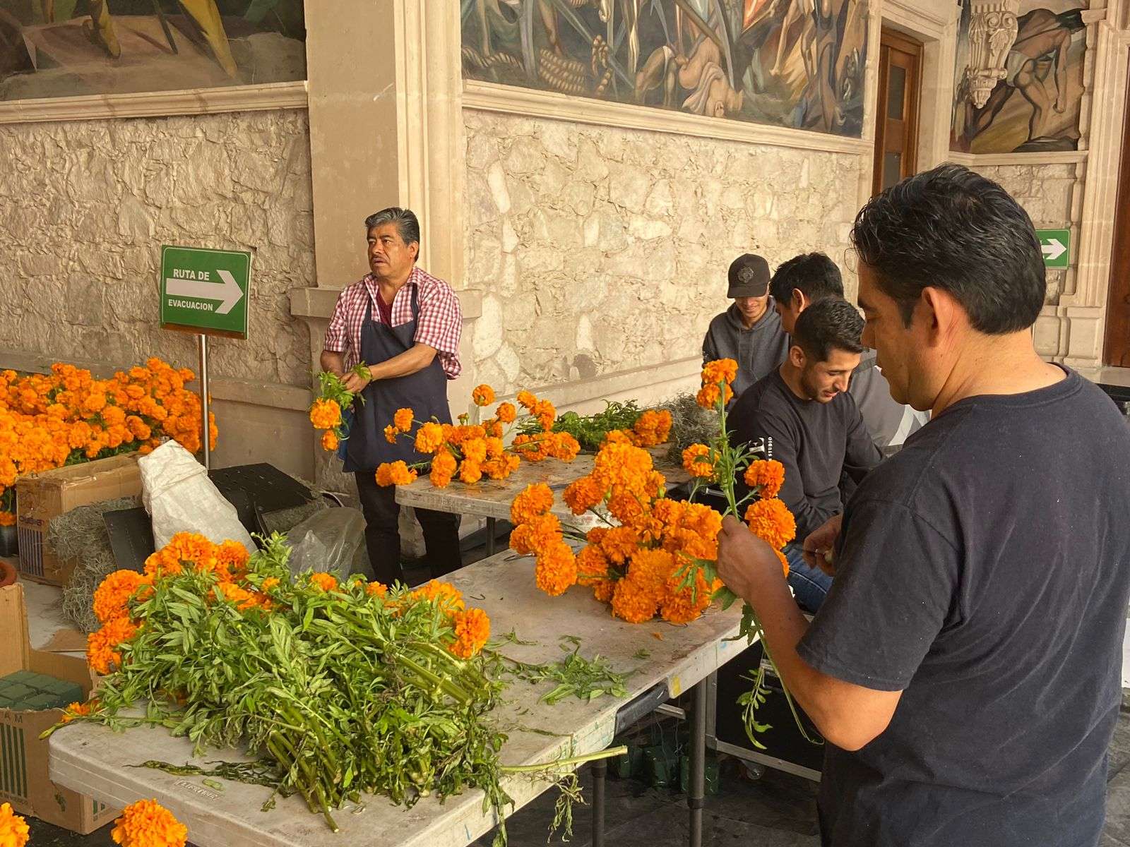 Asimismo, están elaborando arreglos florales para adornar los pasillos del Palacio de Cantera e iniciar los festejos del Día de Muertos.