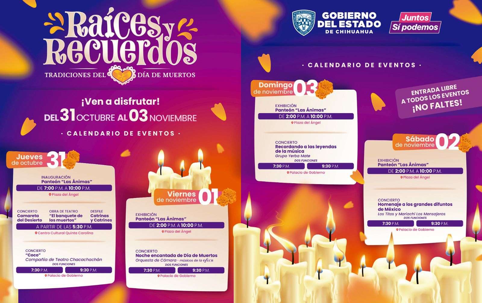 Dentro del programa del evento "Raíces y Recuerdos: Tradiciones del Día de Muertos", se llevarán a cabo conciertos el 31 de octubre con "Coco", el 1 de noviembre con "Noche Encantada de Día de Muertos", el 2 de noviembre con "Homenaje a los Grandes Difuntos de México" y el 3 de noviembre con "Recordando a las Leyendas de la Música", con dos funciones a las 7:30 y 9:30 de la noche.