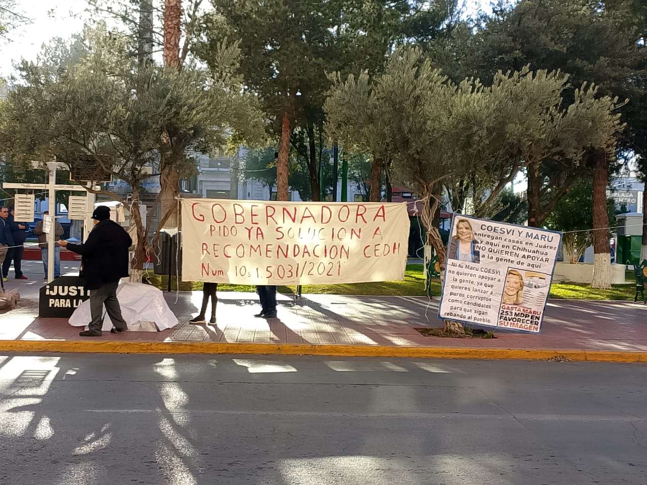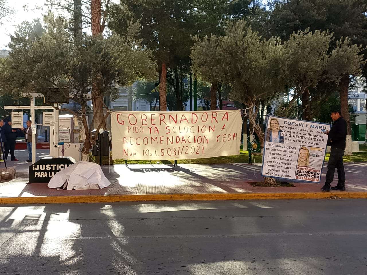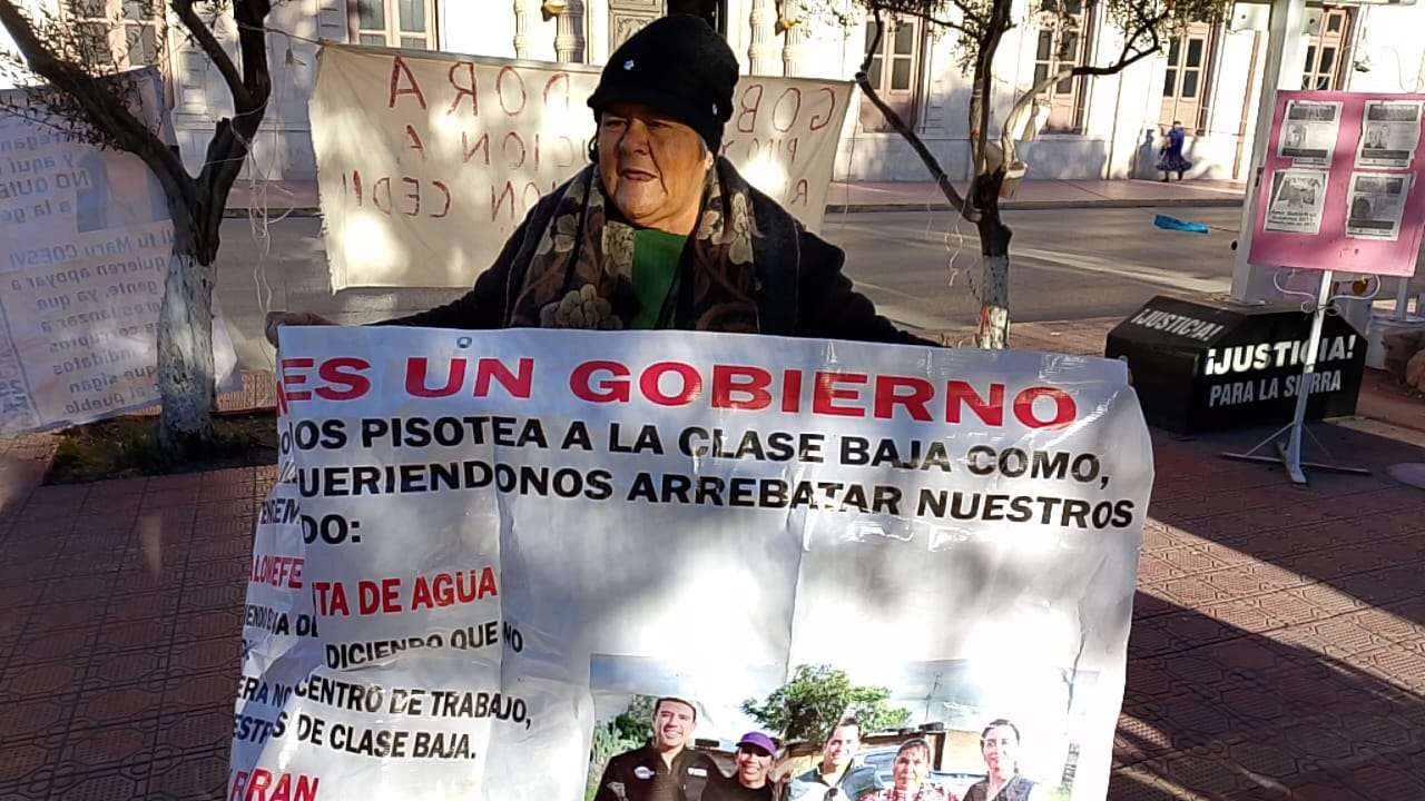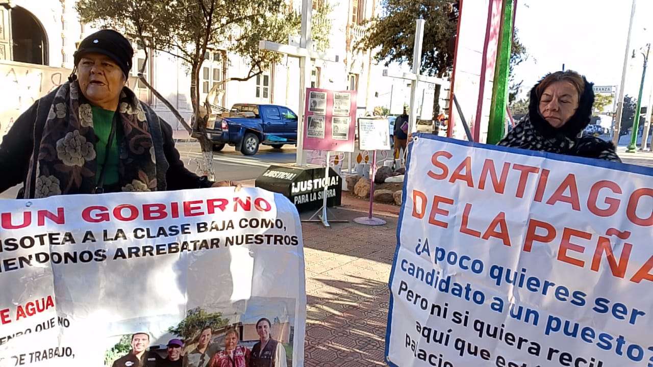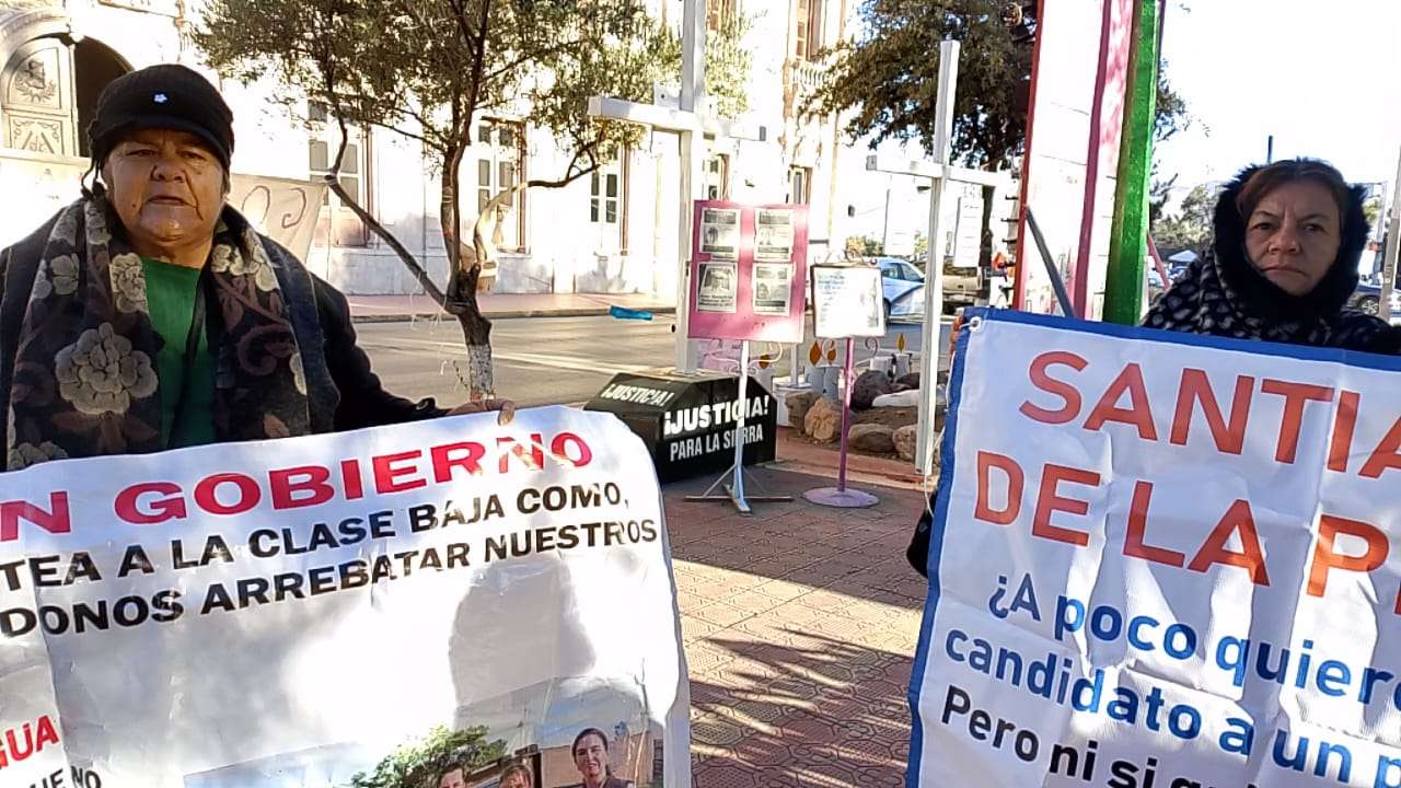 Chihuahua.- La advertencia retumbó en plena Plaza Hidalgo: “A lo mejor hasta la calle cerramos”, las activistas Vicky Márquez y Dionisia Chaparro encabezaron una protesta que escaló en tensión y terminó con una amenaza abierta de bloqueo de vialidades, ante la falta de agua potable y presuntos intentos de despojo en la colonia Ladrilleras.