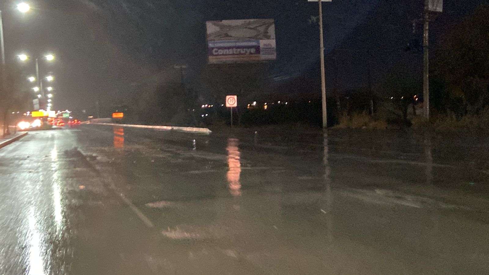 Chihuahua.– Las lluvias registradas la noche y madrugada del lunes provocaron una inundación en la avenida Fuerza Aérea Mexicana, en sentido de sur a norte, lo que generó caos vehicular y afectó a los automovilistas que a diario circulan por la zona.