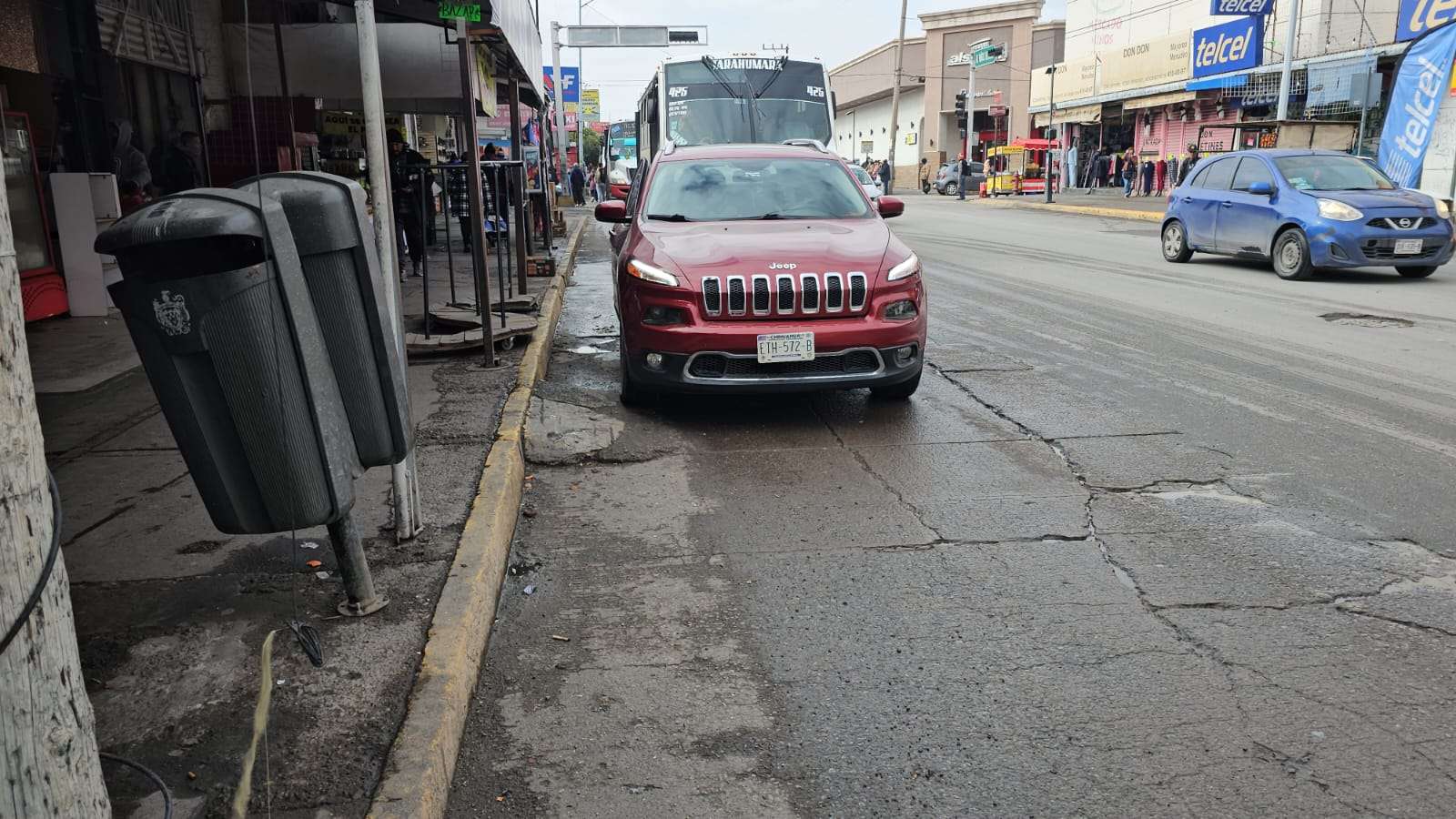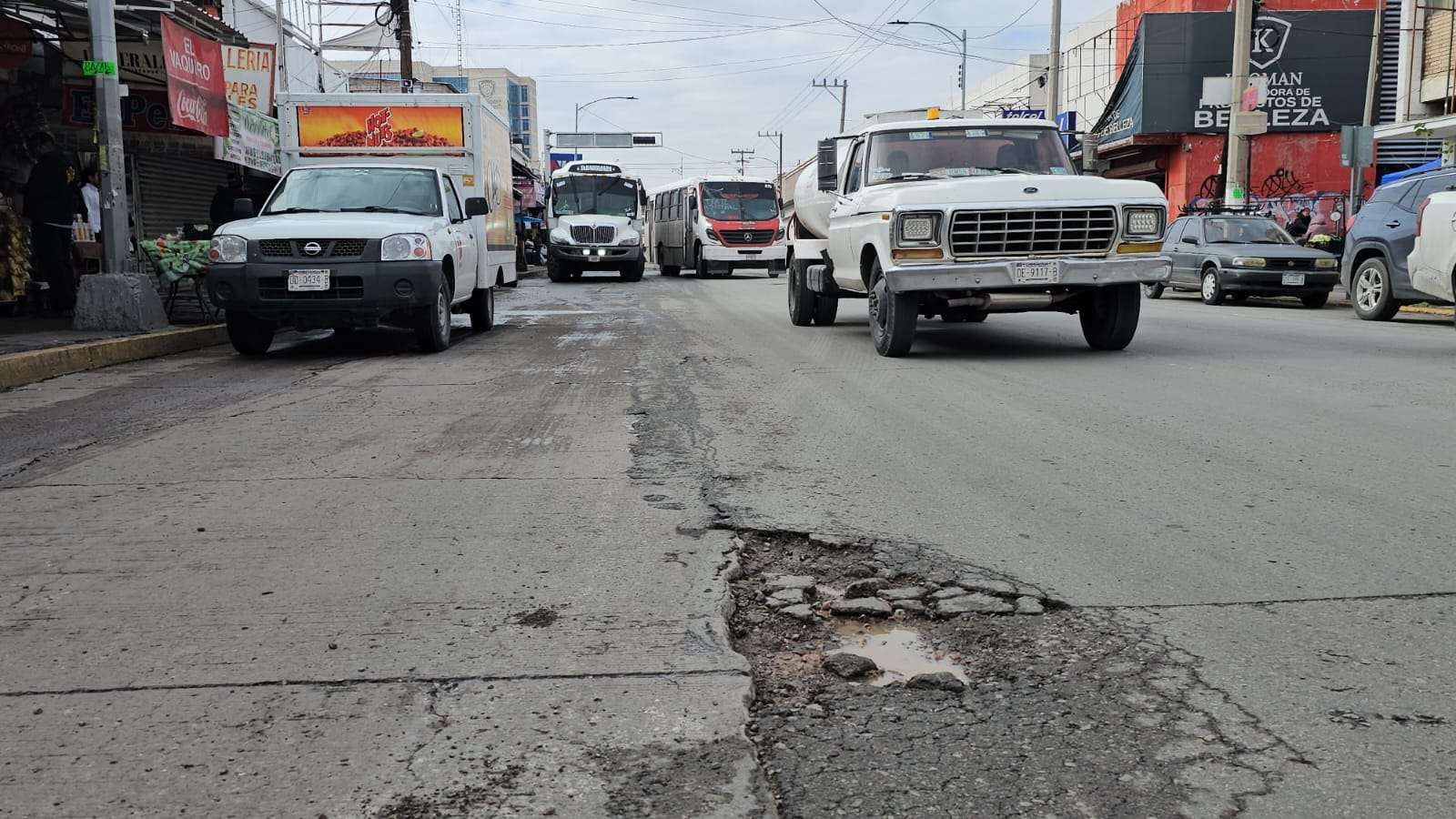 Las afectaciones son más visibles a la altura de la calle Cuarta y entre la calle Camargo y la calle Tercera, zonas donde el constante paso de camiones urbanos, sobre todo en el carril de extrema derecha, ha provocado el deterioro de la carpeta asfáltica.