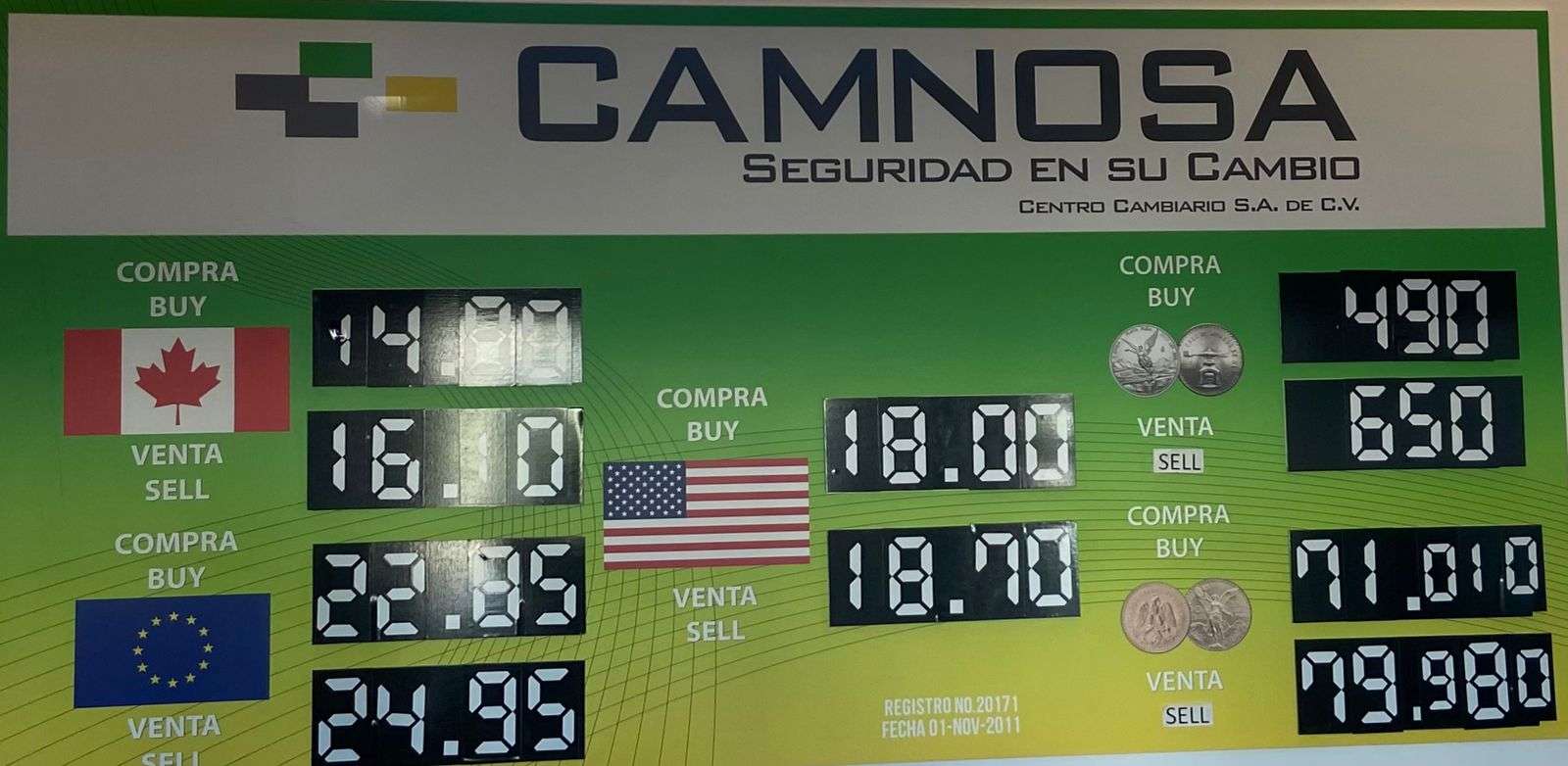 En la casa de cambio Camnosa, ubicada en la calle Aldama, casi esquina con Ocampo, el dólar estadounidense se ofreció a la venta en $18.70 y a la compra en $18.00.