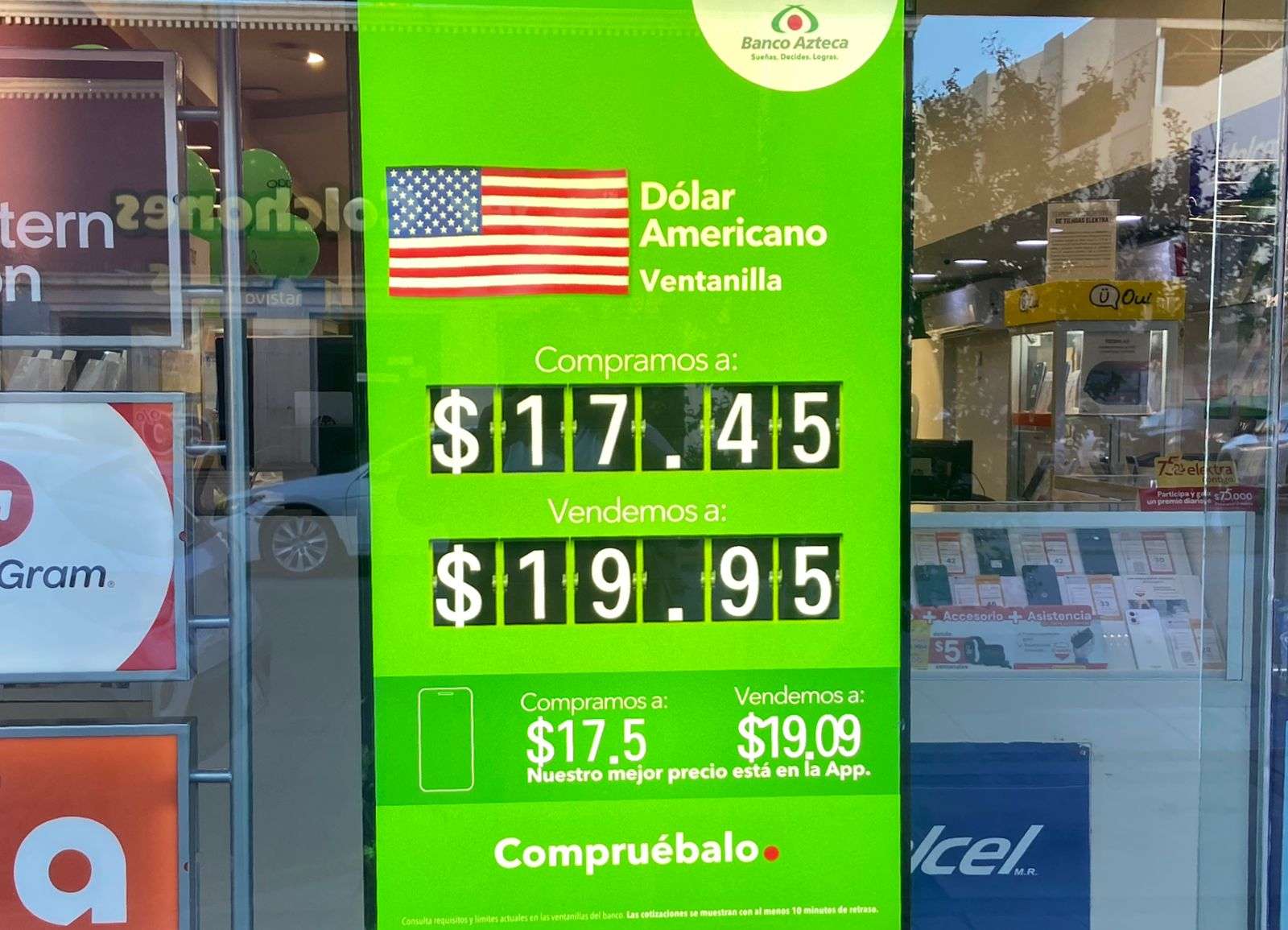 Chihuahua.– La cotización del dólar este jueves 16 de octubre alcanzó un valor de $19.95 a la venta y $17.45 a la compra en ventanillas de Banco Azteca, ubicado en la calle Cuarta y Aldama.