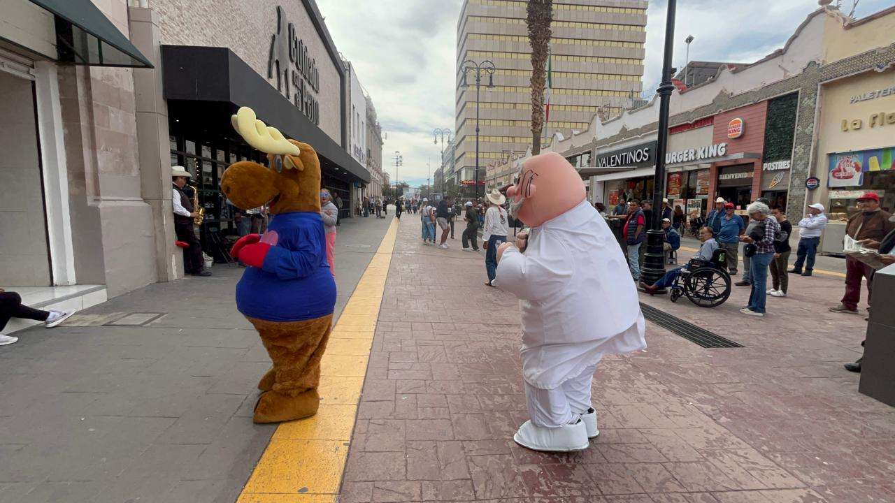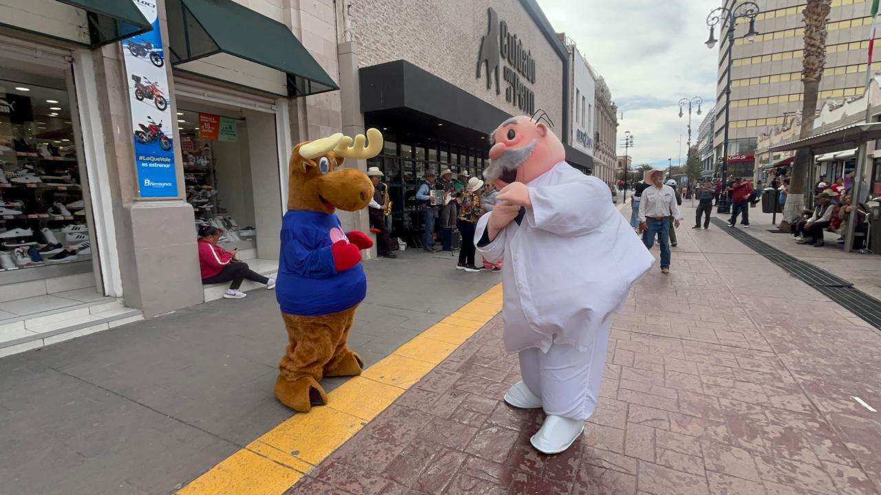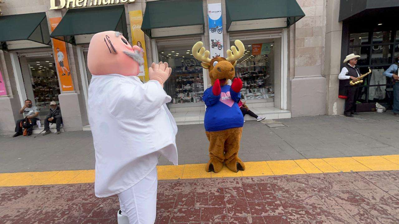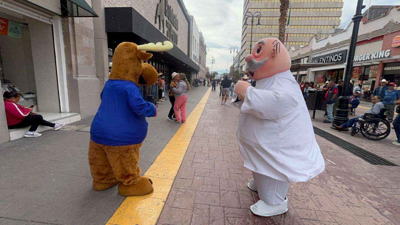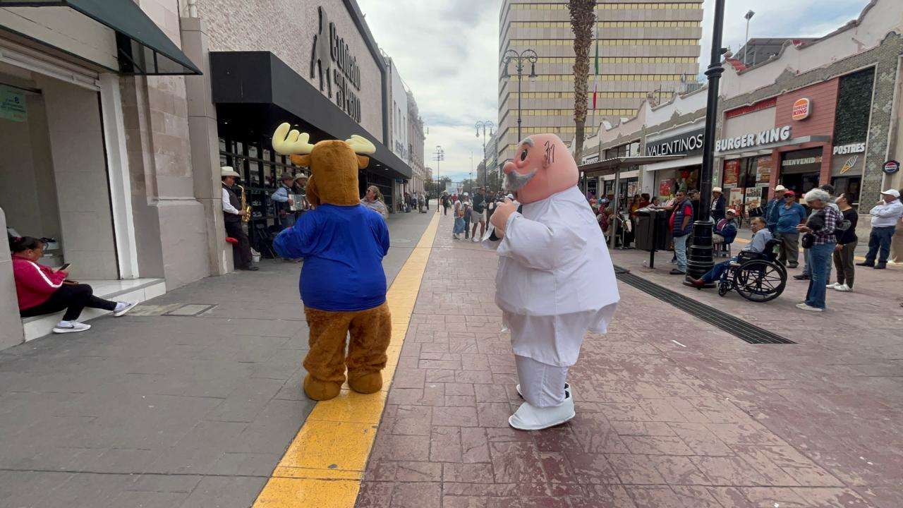 El escenario fue la emblemática calle Libertad, específicamente en el tramo comprendido entre la avenida Independencia y calle Tercera, donde el sonido de una banda norteña callejera sirvió como detonante para un baile que nadie esperaba, pero que todos necesitaban, un singular encuentro entre las botargas del Dr. Simi y el Reno de Telcel.