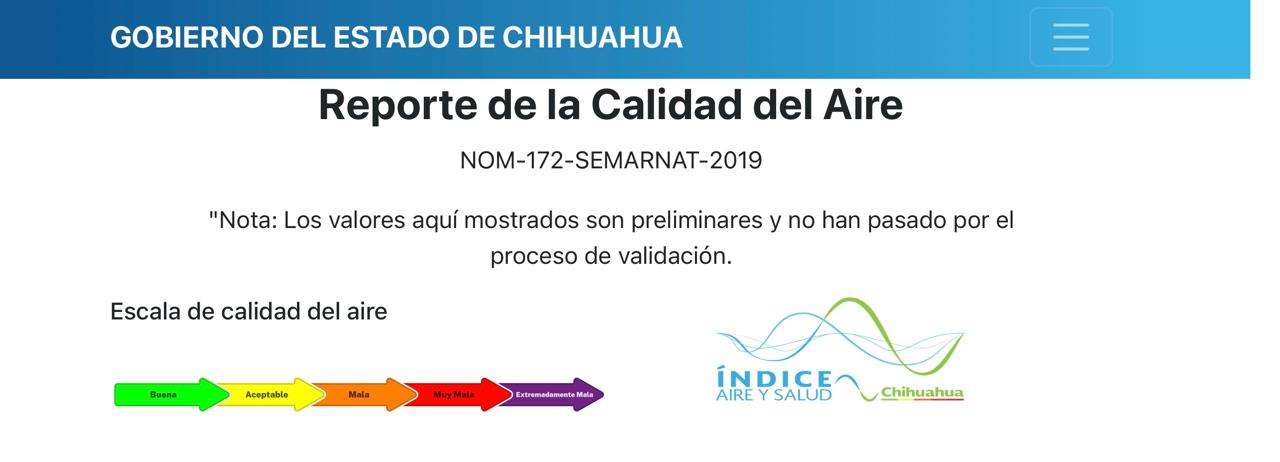 Chihuahua.- A través de la pagina digital calidaddelaire.chihuahua.gob.mx, se dio a conocer que la calidad del aire esta clasificada de extremadamente de riesgo para la salud.