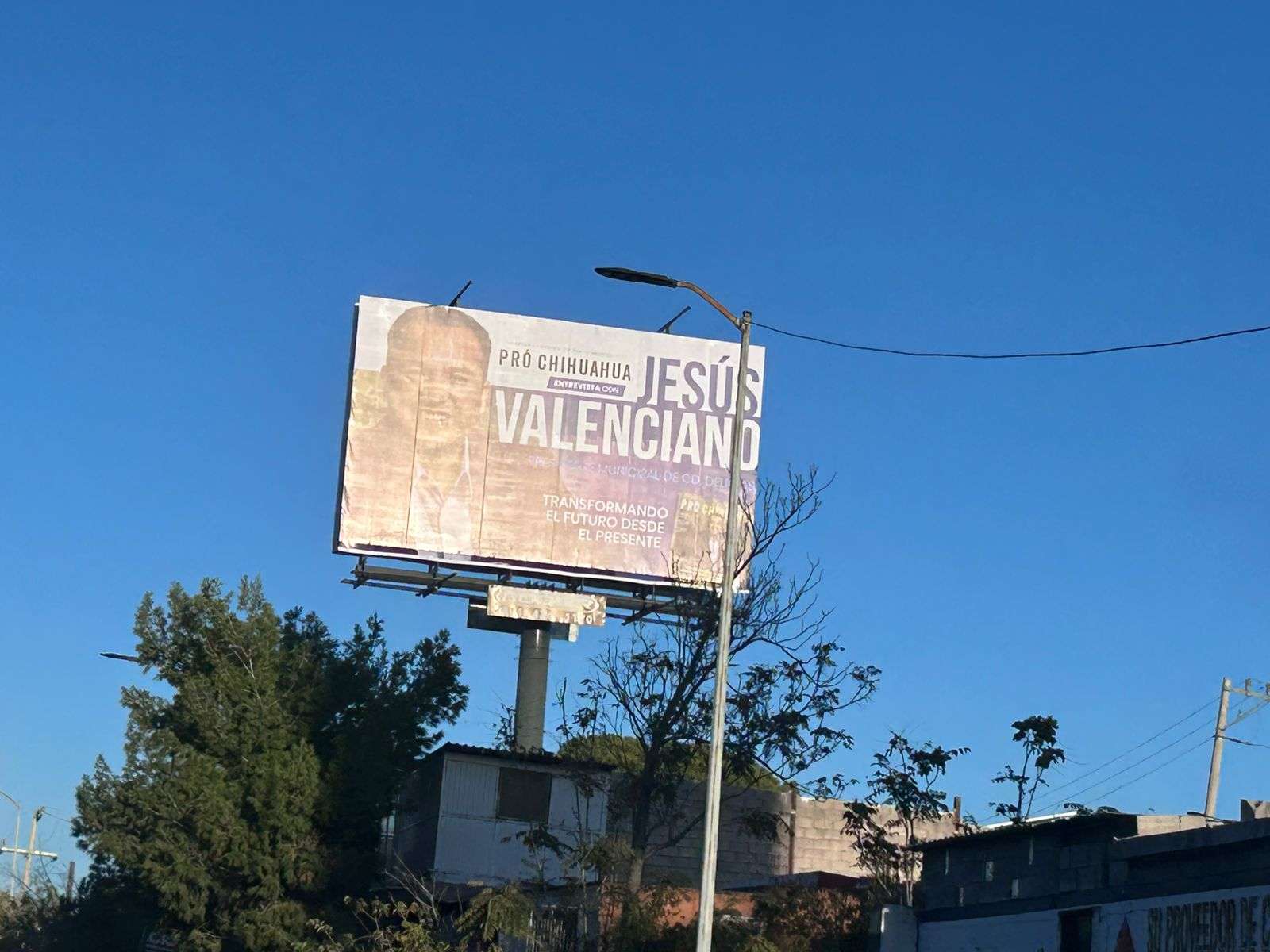 Chihuahua.- Un espectacular con la imagen del alcalde de Delicias, Jesús Valenciano García, fue colocado sobre el corredor La Cantera para promocionar una entrevista en la revista Pro Chihuahua, acción que generó interpretaciones sobre un eventual intento de posicionamiento político rumbo a futuros procesos electorales.