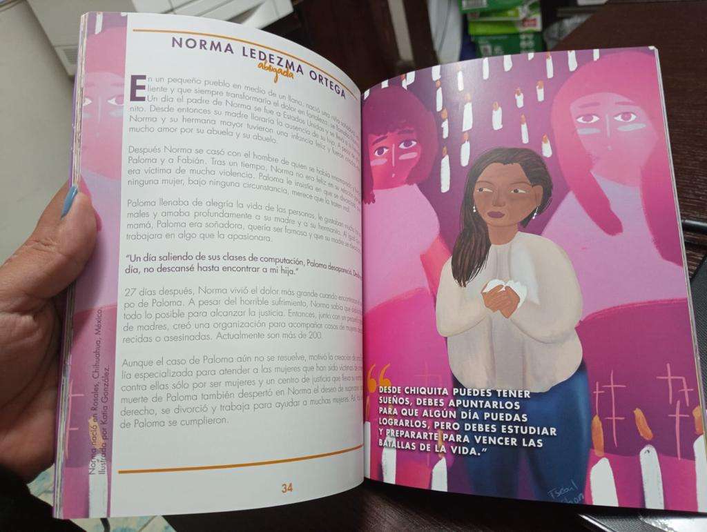 Chihuahua.- Norma Ledezma, fundadora de la Asociación Civil Justicia para Nuestras Hijas, es una de las 25 activistas que aparecen en el libro “Las valientes aventuras de mujeres defensoras”, el cual fue presentado en días pasados en la Ciudad de México.