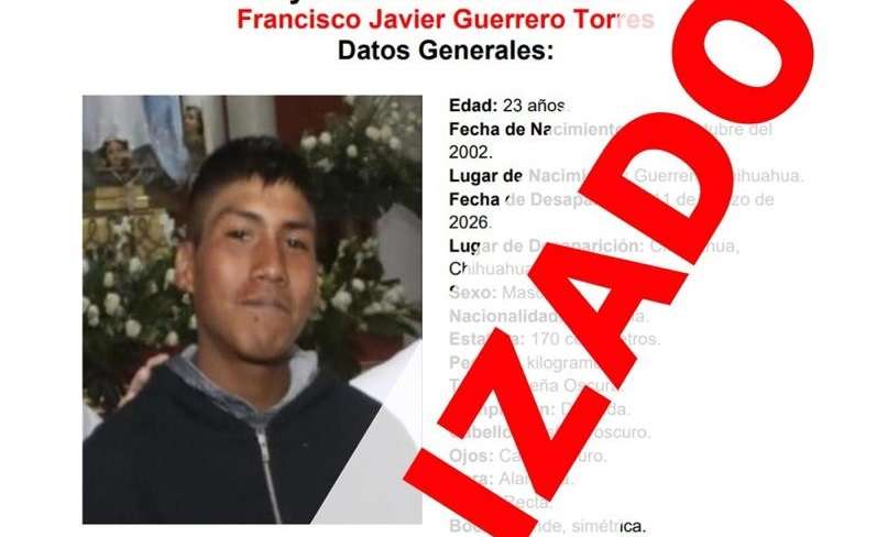 Chihuahua. - La Unidad de Investigación de Personas Ausentes y/o No Localizadas de la Fiscalía de Distrito Zona Centro (FDZC) encontró sano y salvo a Francisco Javier G. T., 23 años de edad
