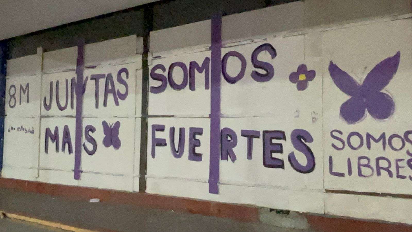 También se observan otras consignas como “Te quiero valiente, libre, independiente, autónoma, fuerte, viva, completa”, además de panfletos de carácter partidista adheridos a las vallas metálicas instaladas en la zona.