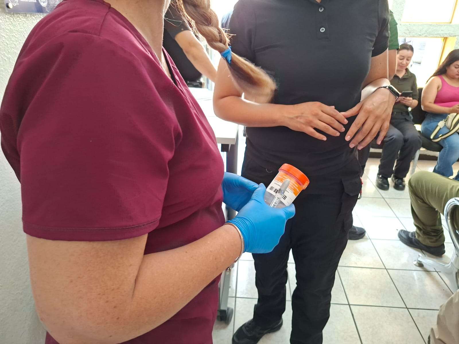 Posteriormente pasaron a un lugar reservado dónde un equipo de químicos les tomó la muestra de orina necesaria para efectuar el análisis y se estableciera una rigurosa cadena de custodia para garantizar su manejo.