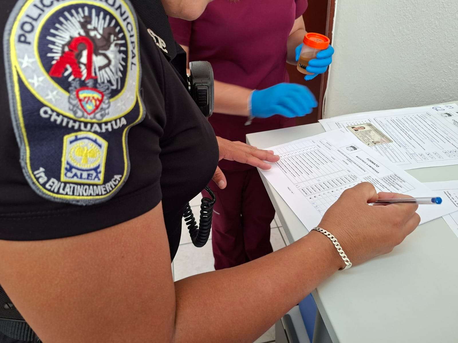 Chihuahua.- Se practicó un examen toxicológico a 205 policías municipales, este viernes por la mañana, quiénes fueron citados desde temprano a los laboratorios de la Facultad de Ciencias Químicas ubicada en el campus 1 de la UACH.
