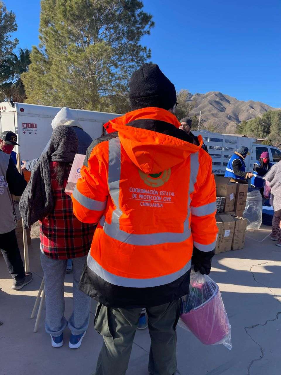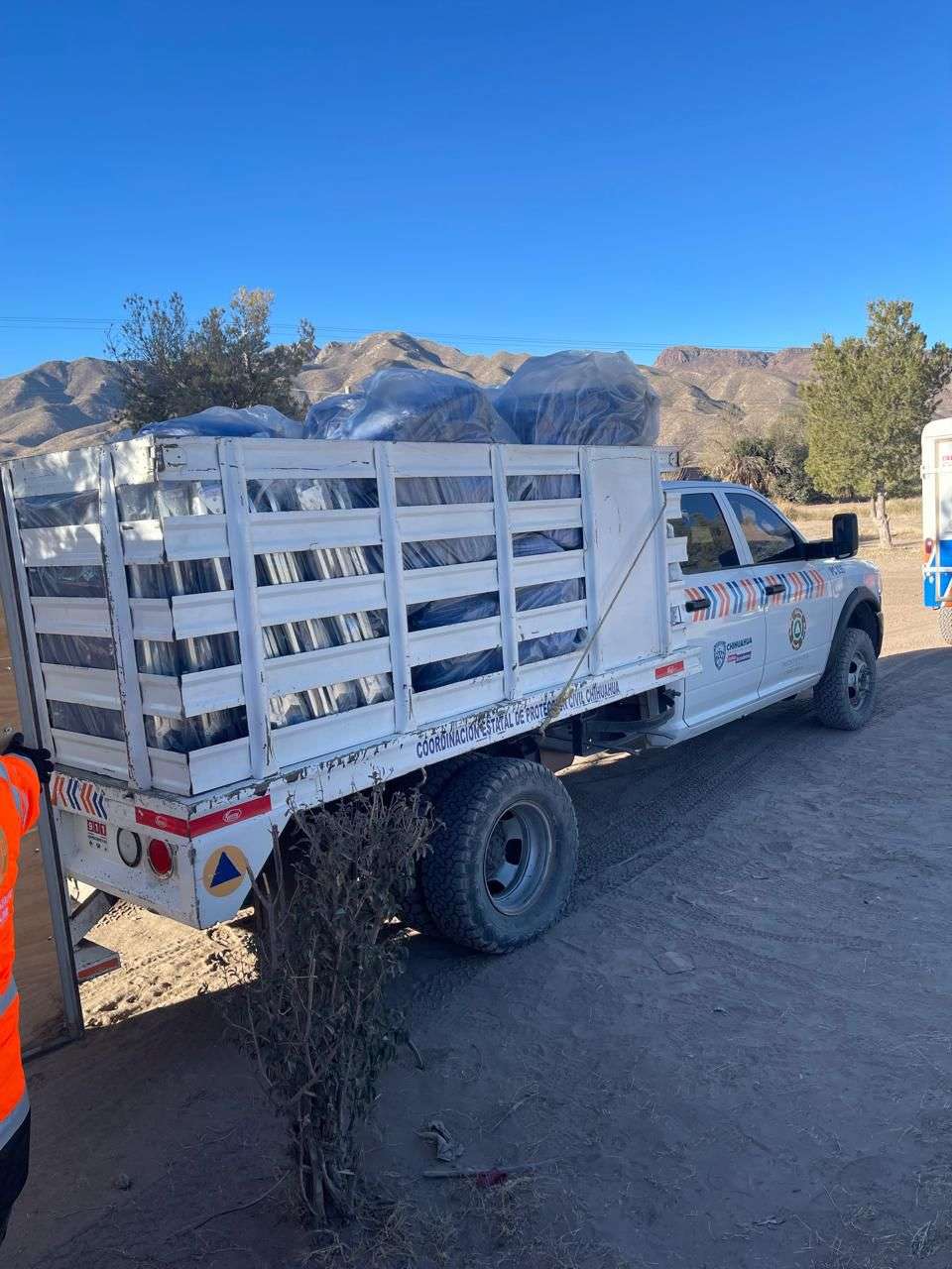 Aldama, Chih. - La Secretaría General de Gobierno, a través del Personal de la Coordinación Estatal de Protección Civil (CEPC) colaboró en la logística y traslado de insumos durante la jornada de apoyo humanitario, realizada en el municipio de Aldama, en beneficio de 400 familias de distintas comunidades.