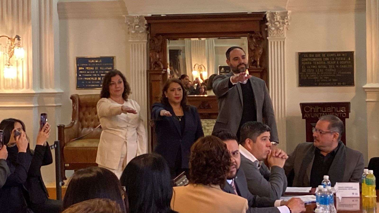 Chihuahua.- El Alcalde Marco Antonio Bonilla Mendoza tomó protesta a los nuevos integrantes del Consejo local de Tutelas despues de ser aprobado por unanimidad en sesión de cabildo.