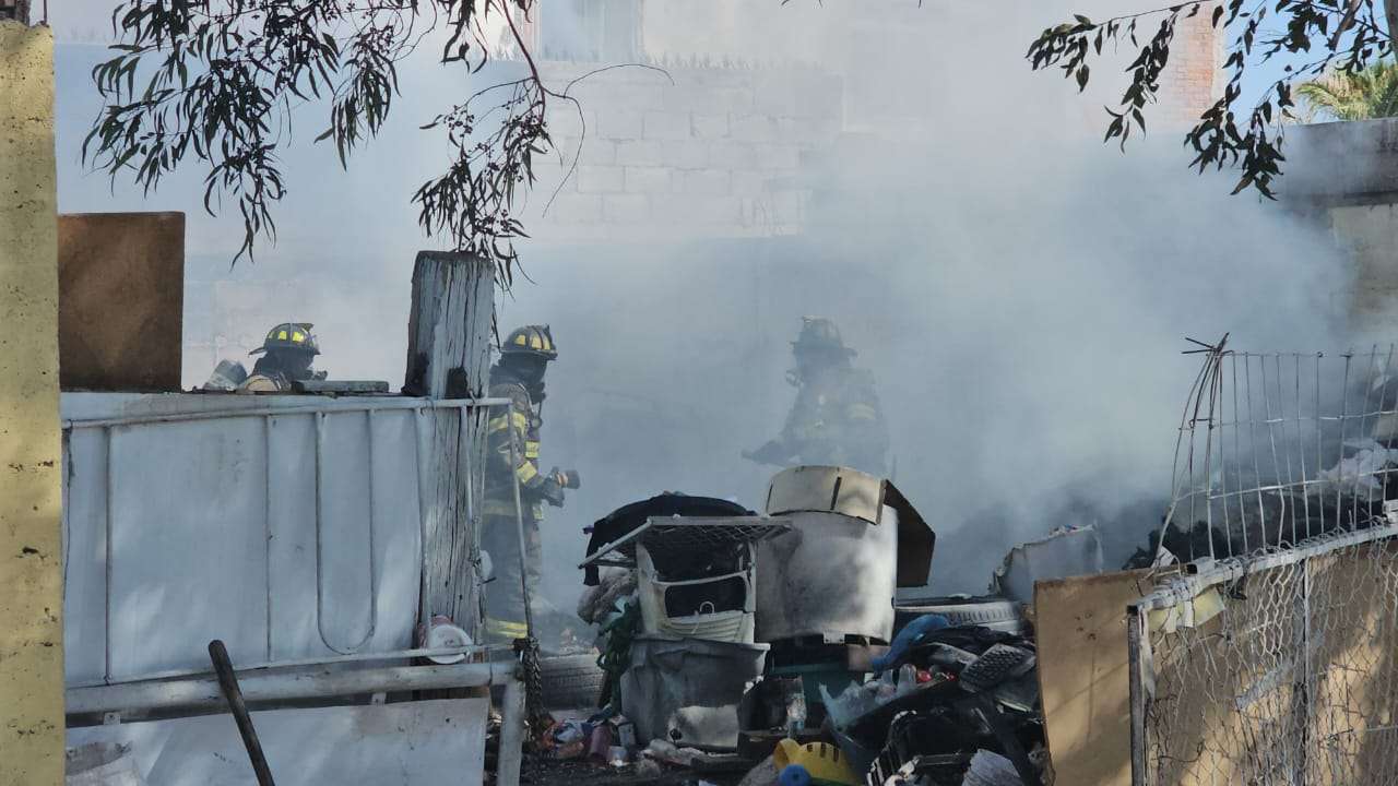 Chihuahua.- Elementos del Cuerpo de Bomberos, apoyados por dos cisternas y una pipa de agua, lograron sofocar un incendio en un domicilio ubicado en la colonia Nombre de Dios, donde se mostraban eran acumuladores de basura.