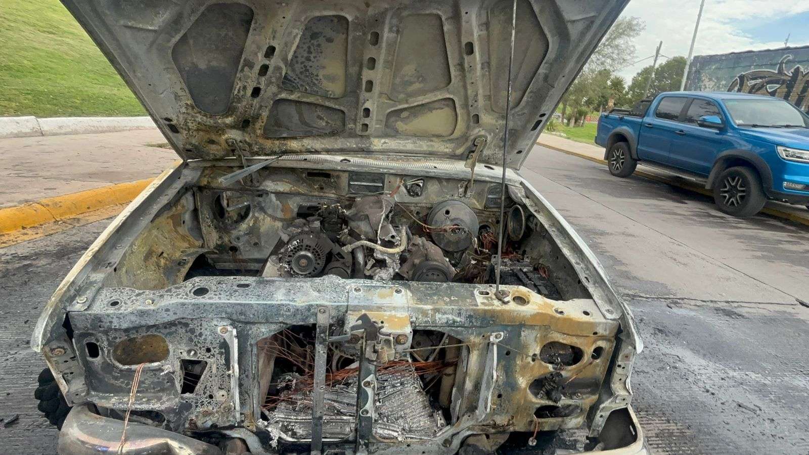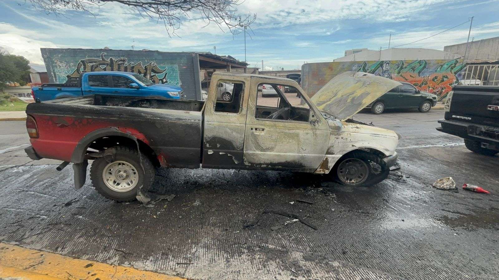 Chihuahua.- Una camioneta Ford Ranger 1994, sufrió daños totales al generarse un corto en la batería, la cual se incendió en todo el frente consumiendo la totalidad de la unidad.