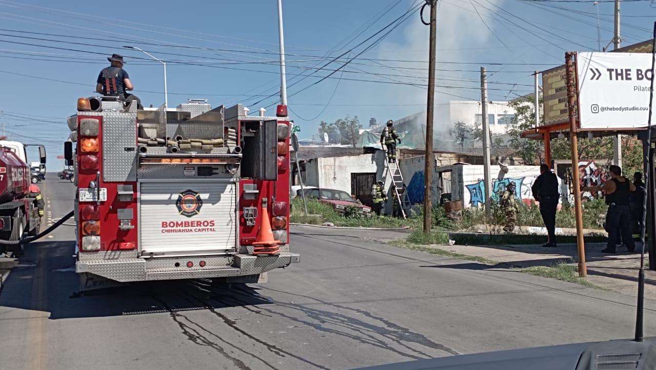 Chihuahua.- Un voraz incendio consumió dos vehículos chatarra en un predio de la colonia Granjas, el reporte inicial al número de emergencia indicaba un incendio de casa habitación en el cruce de la privada de Catalpa y avenida José María Iglesias; sin embargo, se trataba de una tapia donde se encontraban dos vehículos descompuestos, los cuales fueron consumidos por las llamas.