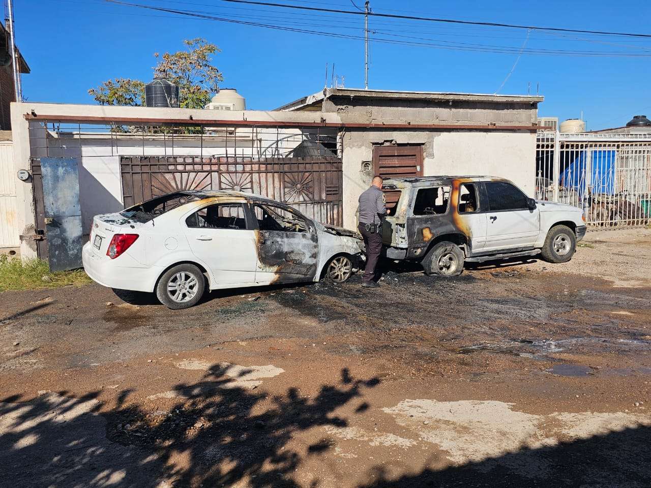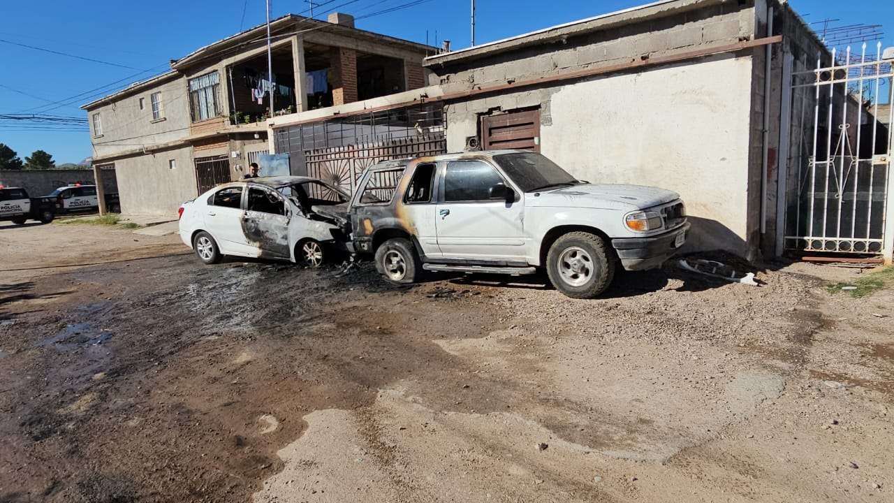 Chihuahua.- Un fuerte incendio de dos vehículos movilizó a autoridades en la Colonia 3 de mayo en la calle Felipe Ángeles cruce con 25 al sur de la ciudad.