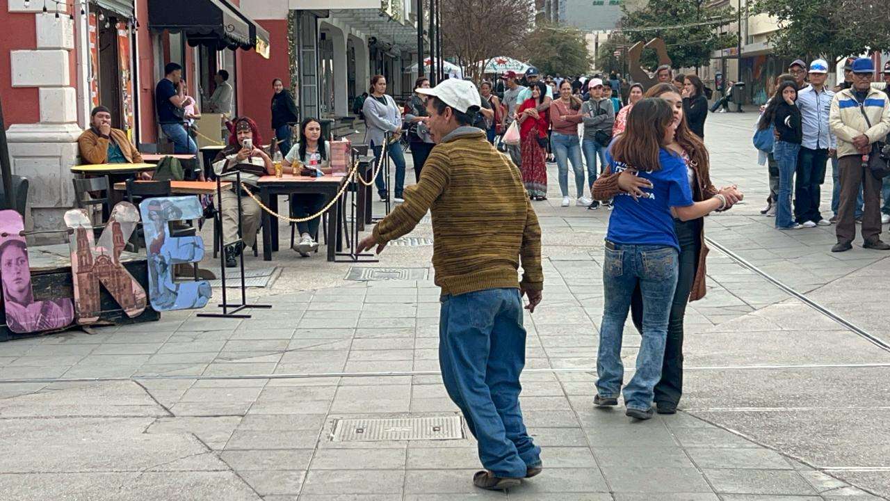 Sobre la calle Victoria y tercera, varias parejas, mujeres y hombres solos, sacaron a relucir sus mejores pasos aprovechando la música de uno de los locales.