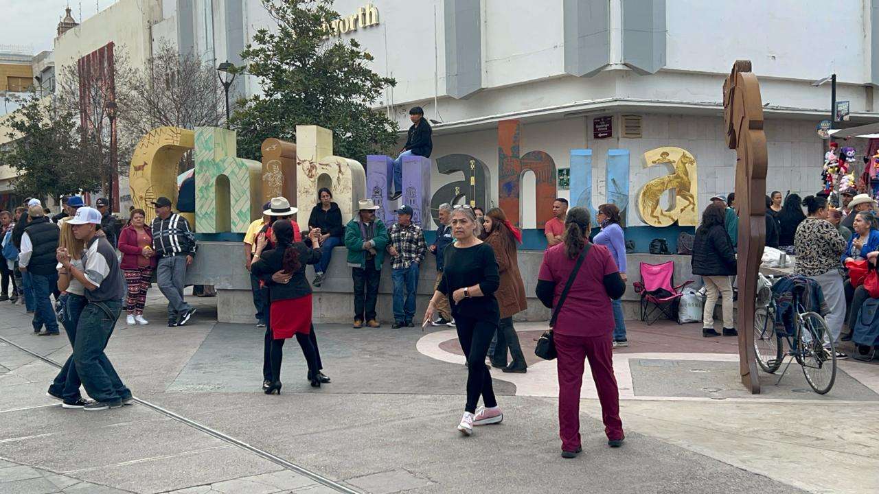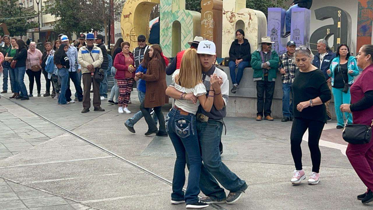 Chihuahua.- Varias personas armaron el bailongo en el centro de la ciudad justamente frente a las letras de Chihuahua.