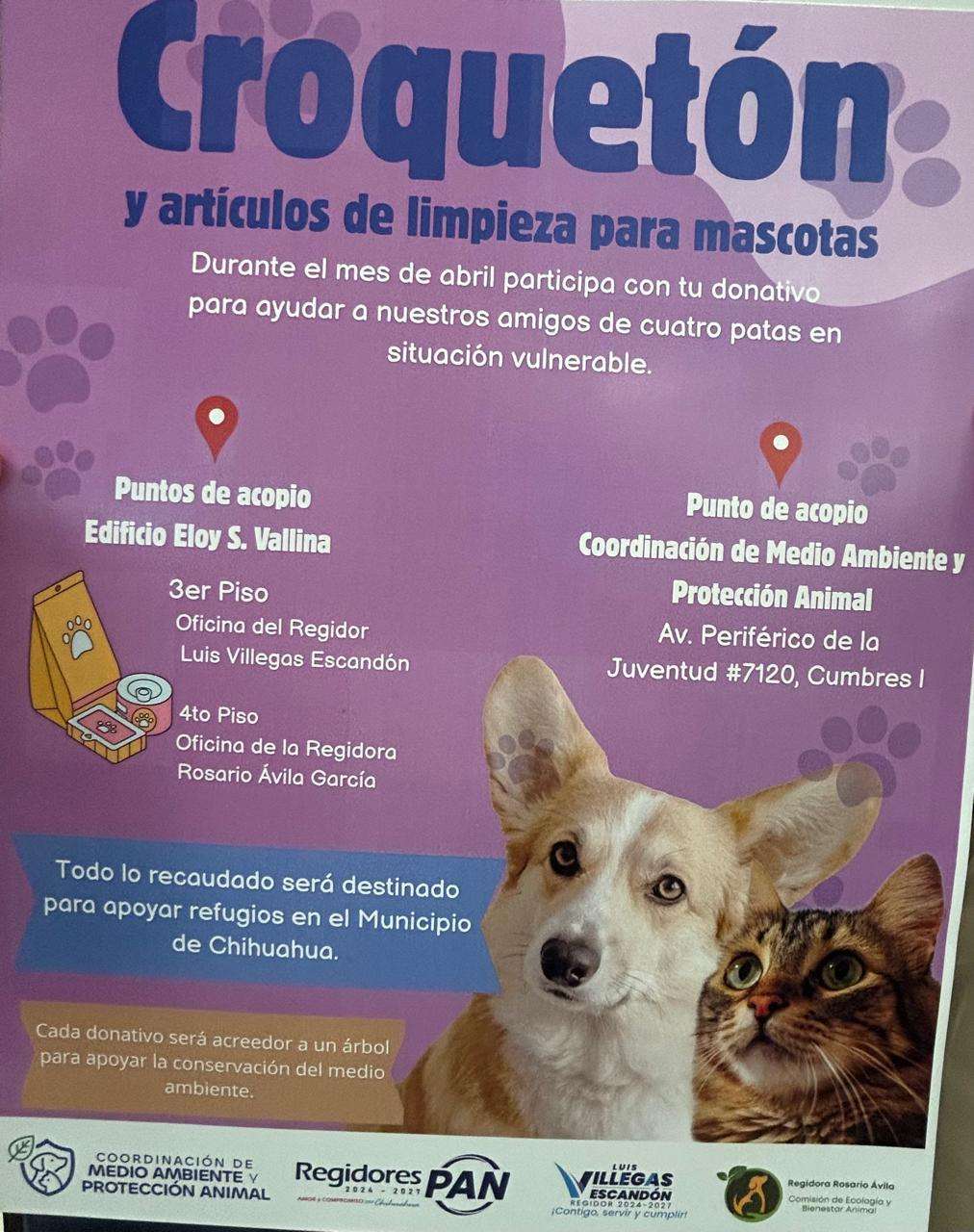 "La intención principal es atender el problema de vulnerabilidad que viven muchos animalitos, estoy convencido de que recaudaremos bastante porque la gente de Chihuahua es sumamente solidaria y empática con estos temas; está en nuestro escudo y en nuestra esencia", afirmó el funcionario, haciendo un llamado a colaboradores municipales y a la ciudadanía en general para sumarse durante todo el mes de abril.