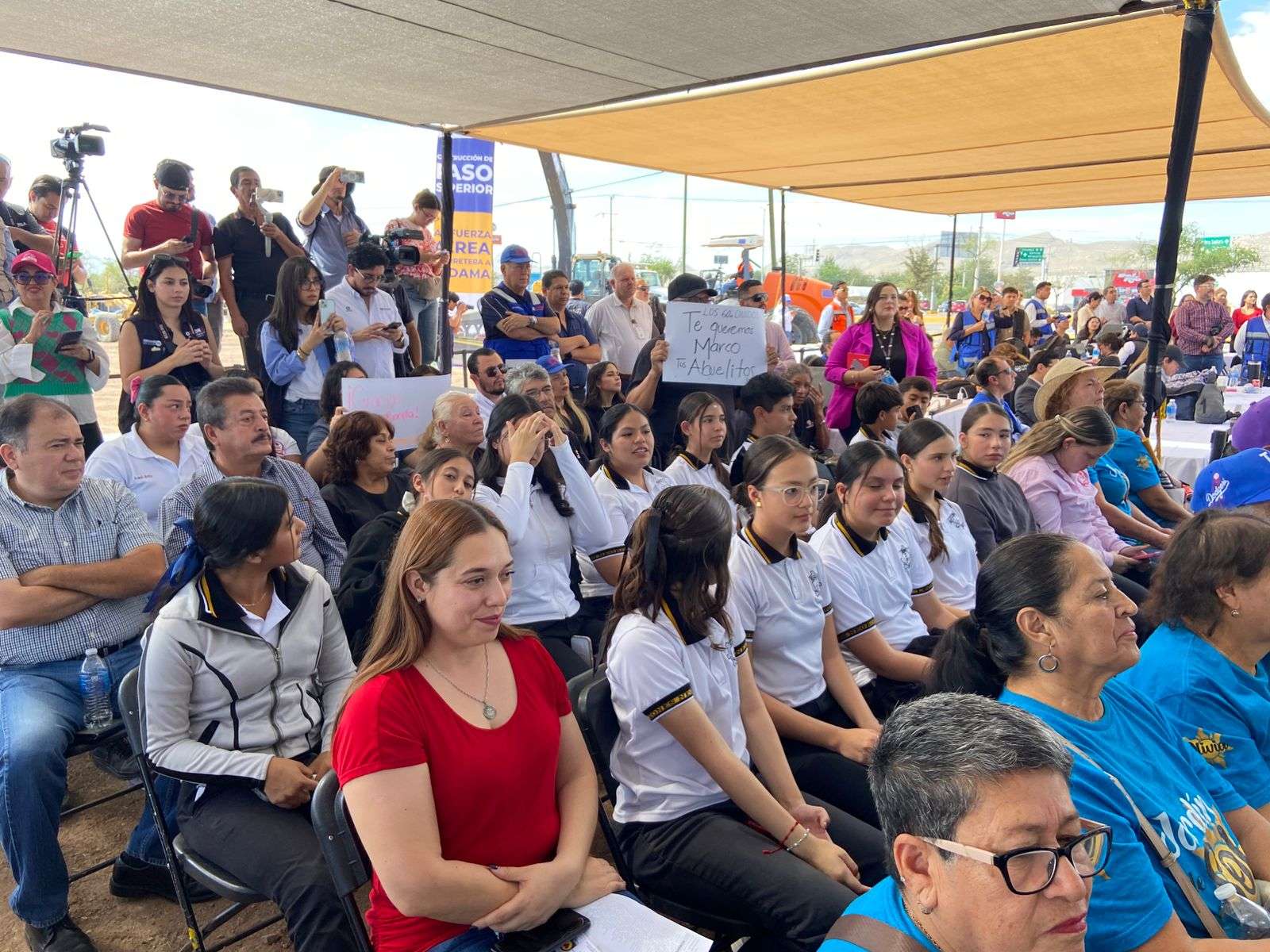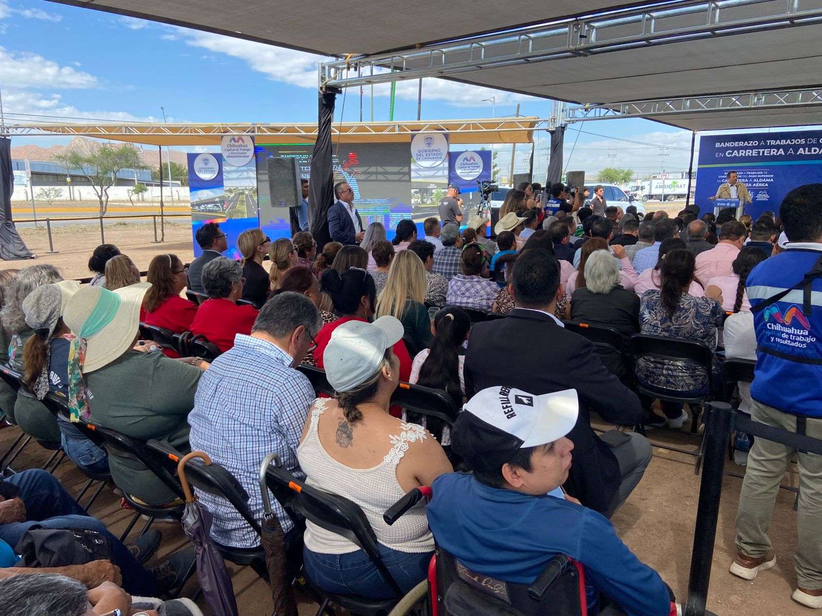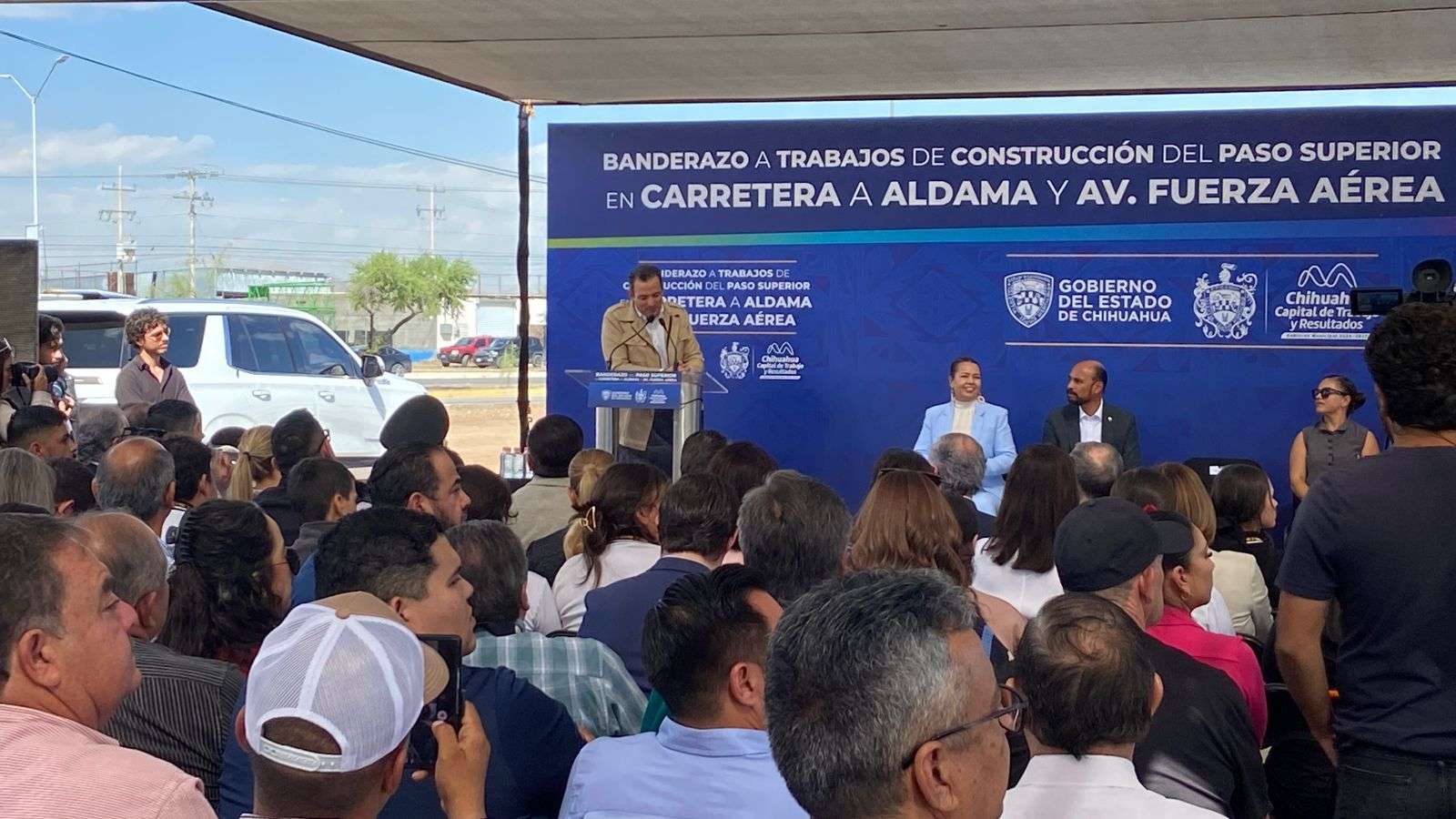 Chihuahua.- El alcalde Marco Bonilla encabezó el banderazo de inicio de la construcción del paso superior en la carretera a Aldama y avenida Fuerza Aérea Mexicana, para apoyo a la movilidad y en beneficio de las familias de la zona oriente de la ciudad y del municipio de Aldama.