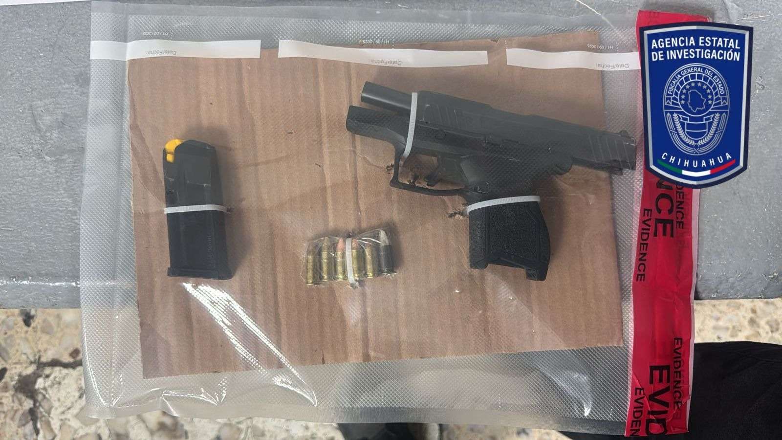 Chihuahua, Chih.- Como resultado del cumplimiento de una orden de cateo en un domicilio de la colonia Nuevo Triunfo, elementos de la Agencia Estatal de Investigación (AEI), adscritos a la Fiscalía de Distrito Zona Centro, detuvieron en flagrancia a dos masculinos, por delitos contra la salud y posesión de arma de fuego, hoy jueves.