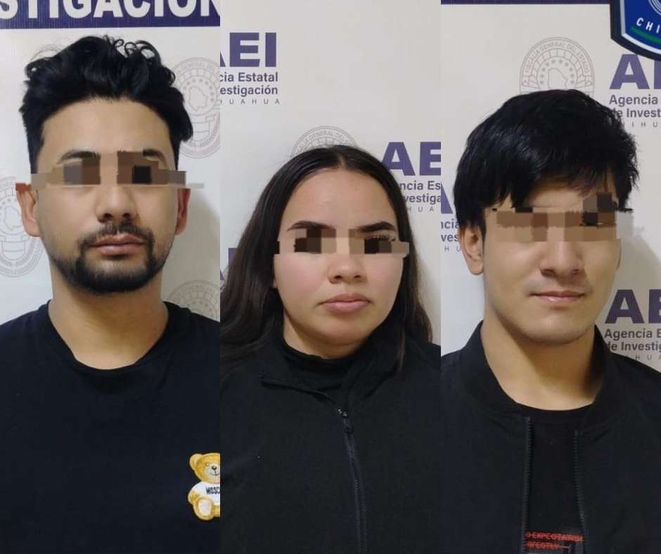 Chihuahua, Chih.- Elementos de la Agencia Estatal de Investigación adscritos a la Fiscalía de Distrito Zona Centro, en la ciudad de Chihuahua, ayer sábado detuvieron en flagrancia a quienes se identificaron como Ángel R.H., de 28 años, Omar Antonio E.H., de 22 años y Reyna Samira R.N., de 23 años de edad, por delitos contra la salud