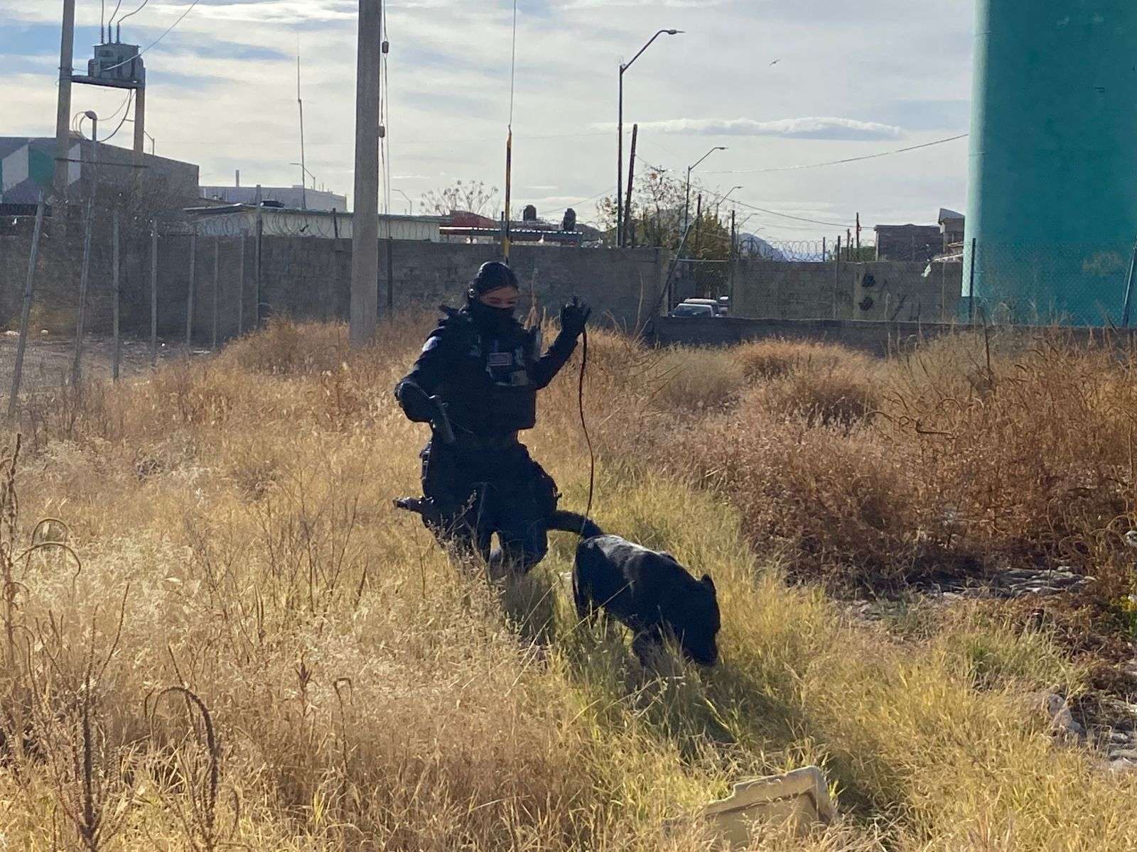 En las inmediaciones del lugar, agentes del grupo K-9 de la Policía Estatal localizaron y aseguraron un arma Glock calibre .45, la cual había sido abandonada.