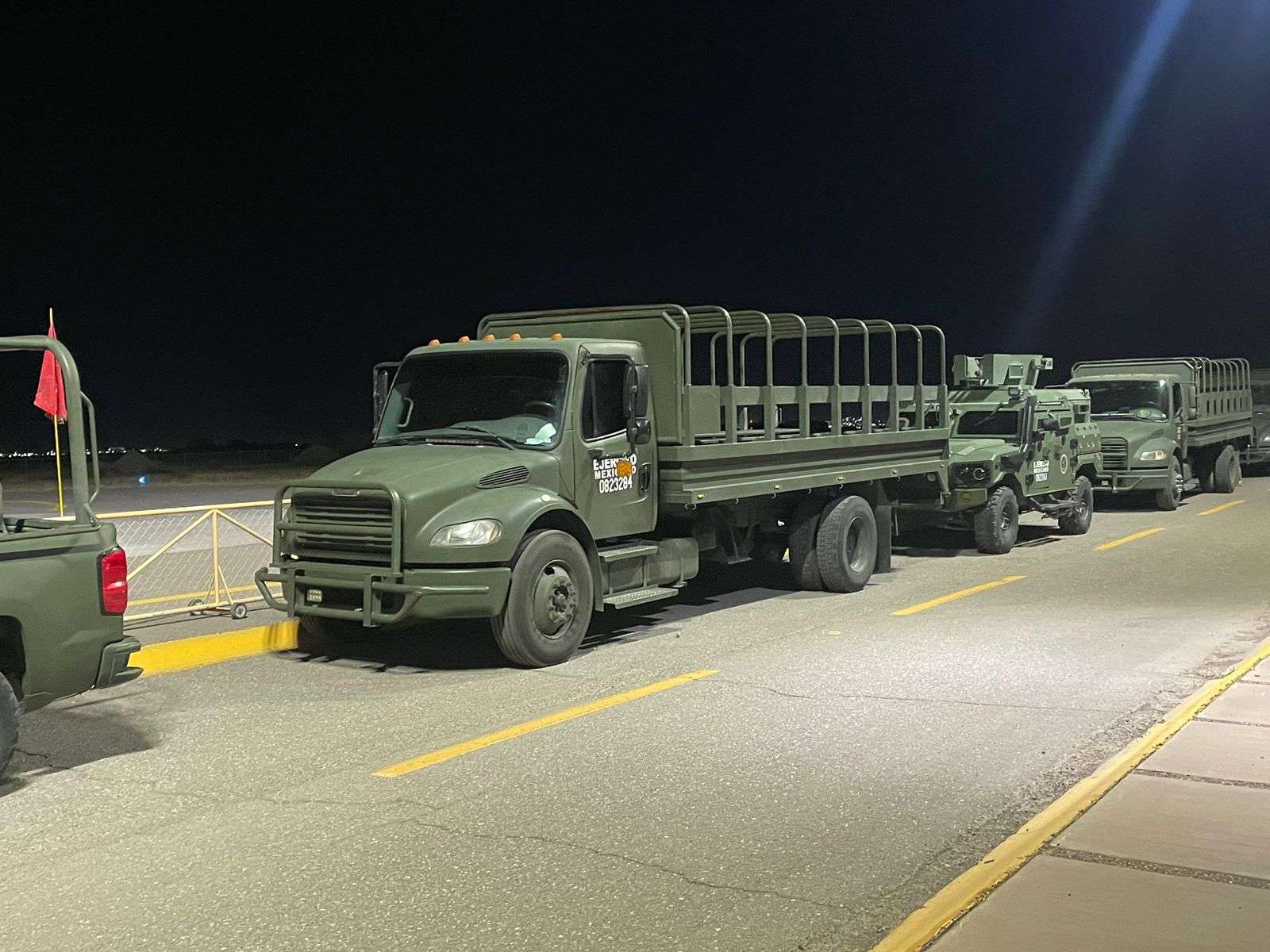 Chihuahua.- La noche de este martes arribó una aeronave con efectivos militares a la Base Aérea de Chihuahua procedente del Aeropuerto Internacional Felipe Ángeles (AIFA), con el objetivo de reforzar la presencia del Ejército Mexicano y la Guardia Nacional en la entidad.