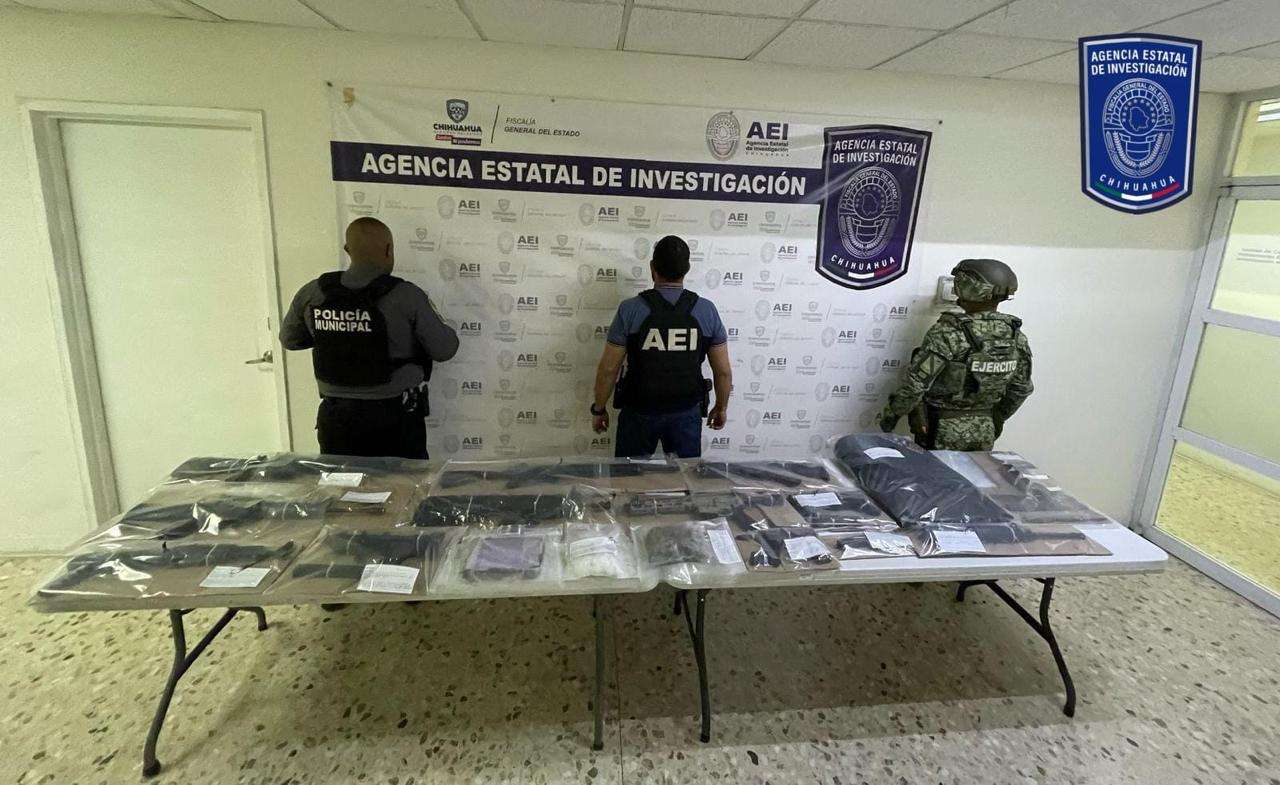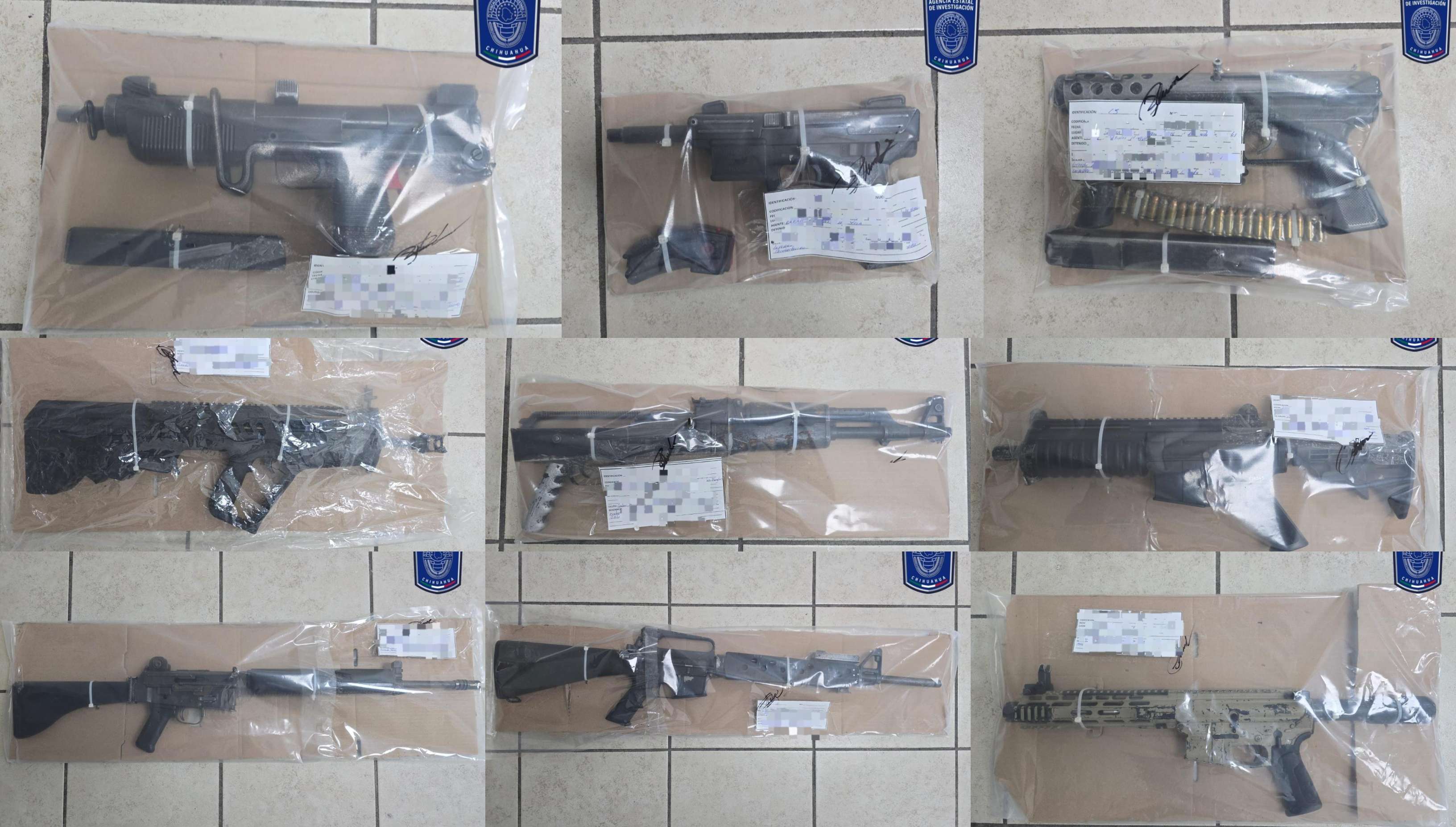 Chihuahua.- En seguimiento a una denuncia anónima, elementos de la Agencia Estatal de Investigación, aseguraron mariguana y cristal, así como 10 armas de fuego de grueso calibre y cientos de cartuchos útiles que encontraron en el interior de una pick up en la colonia Rinconada Los Nogales, en la ciudad de Chihuahua.