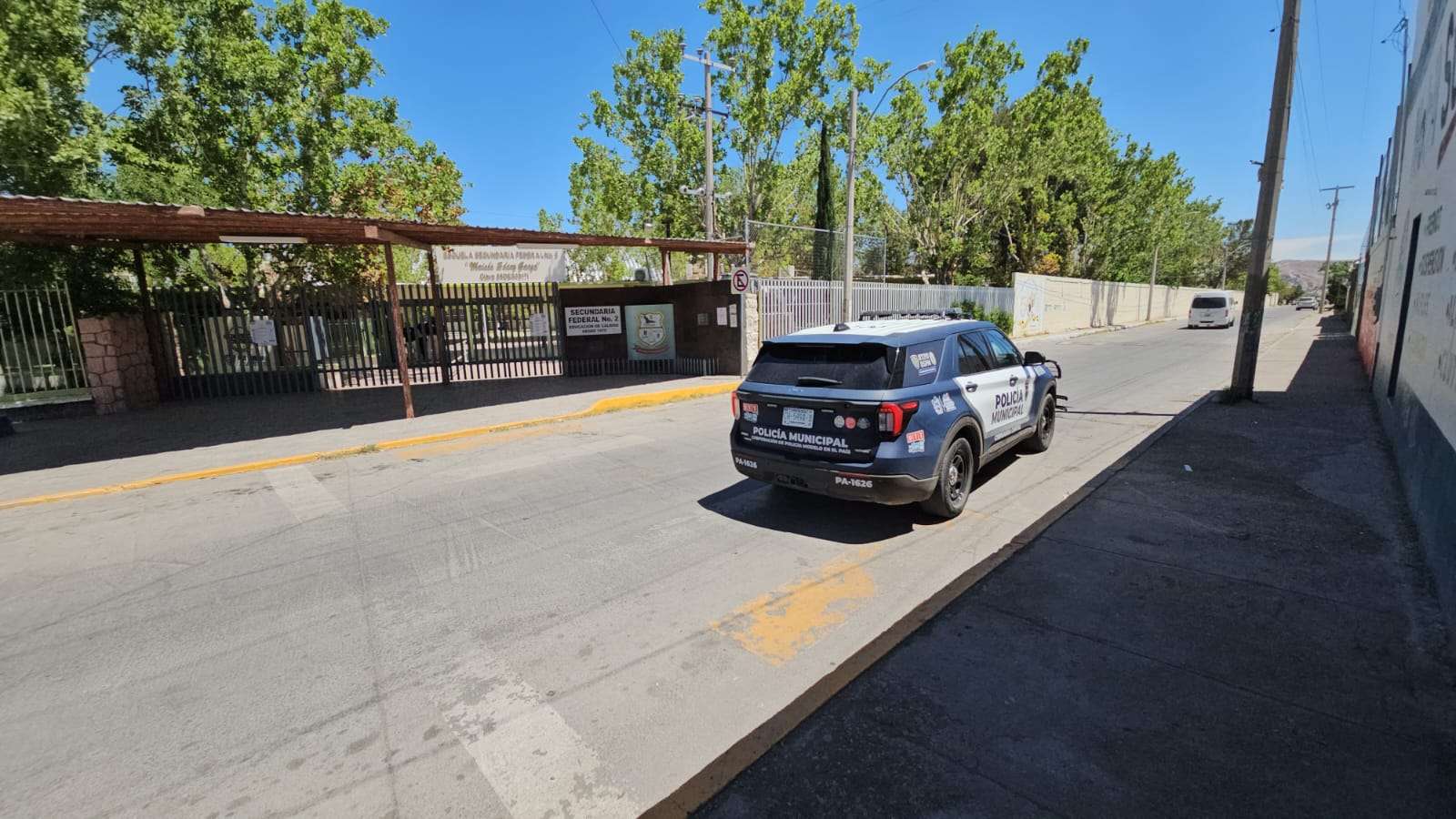 Chihuahua.- Una llamada al número de emergencias alertó a las autoridades sobre el hallazgo de un objeto sospechoso al interior de la Secundaria Federal número 2, ubicada en el cruce de la calle Pinabete y la avenida Tecnológico.