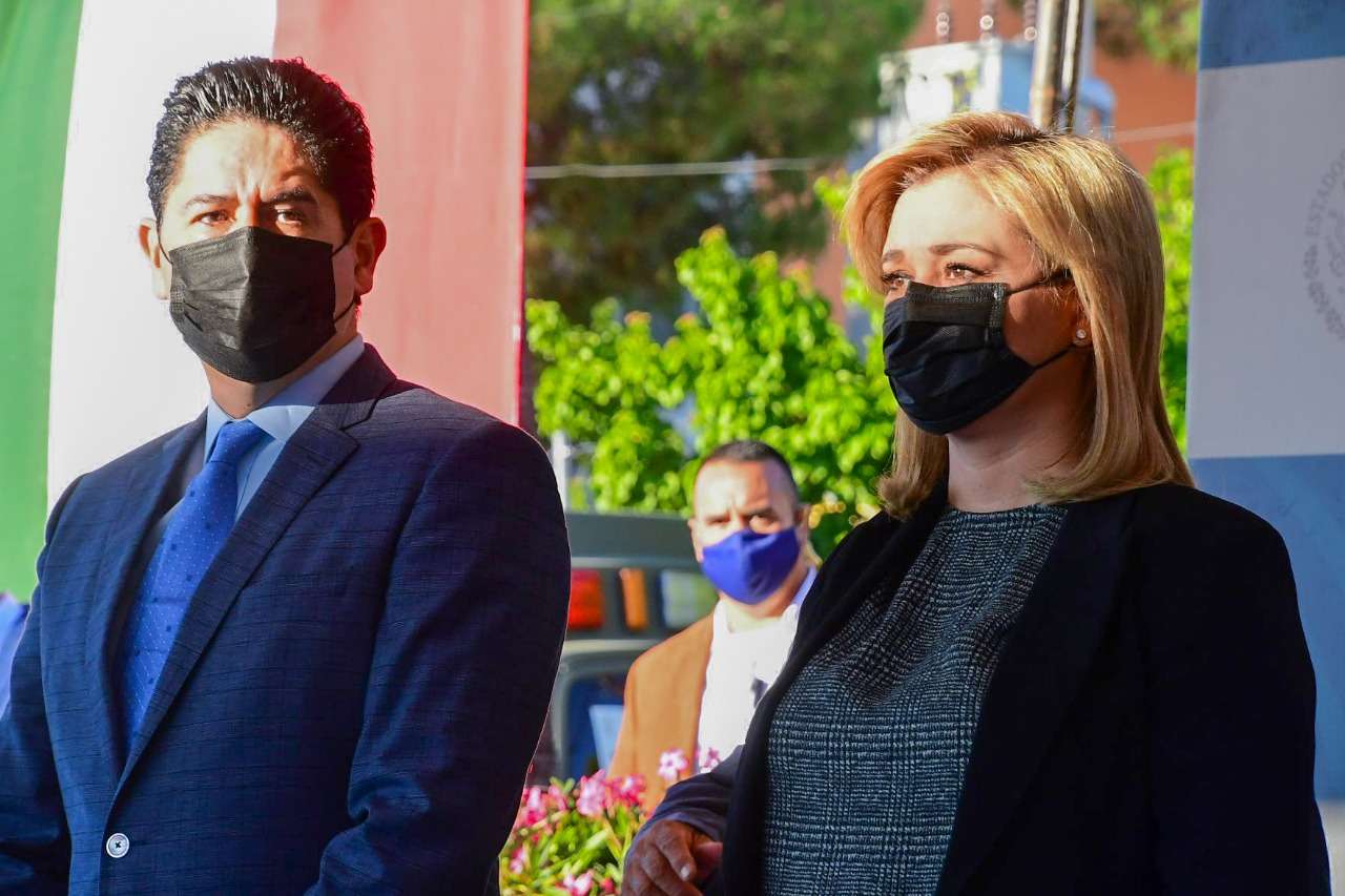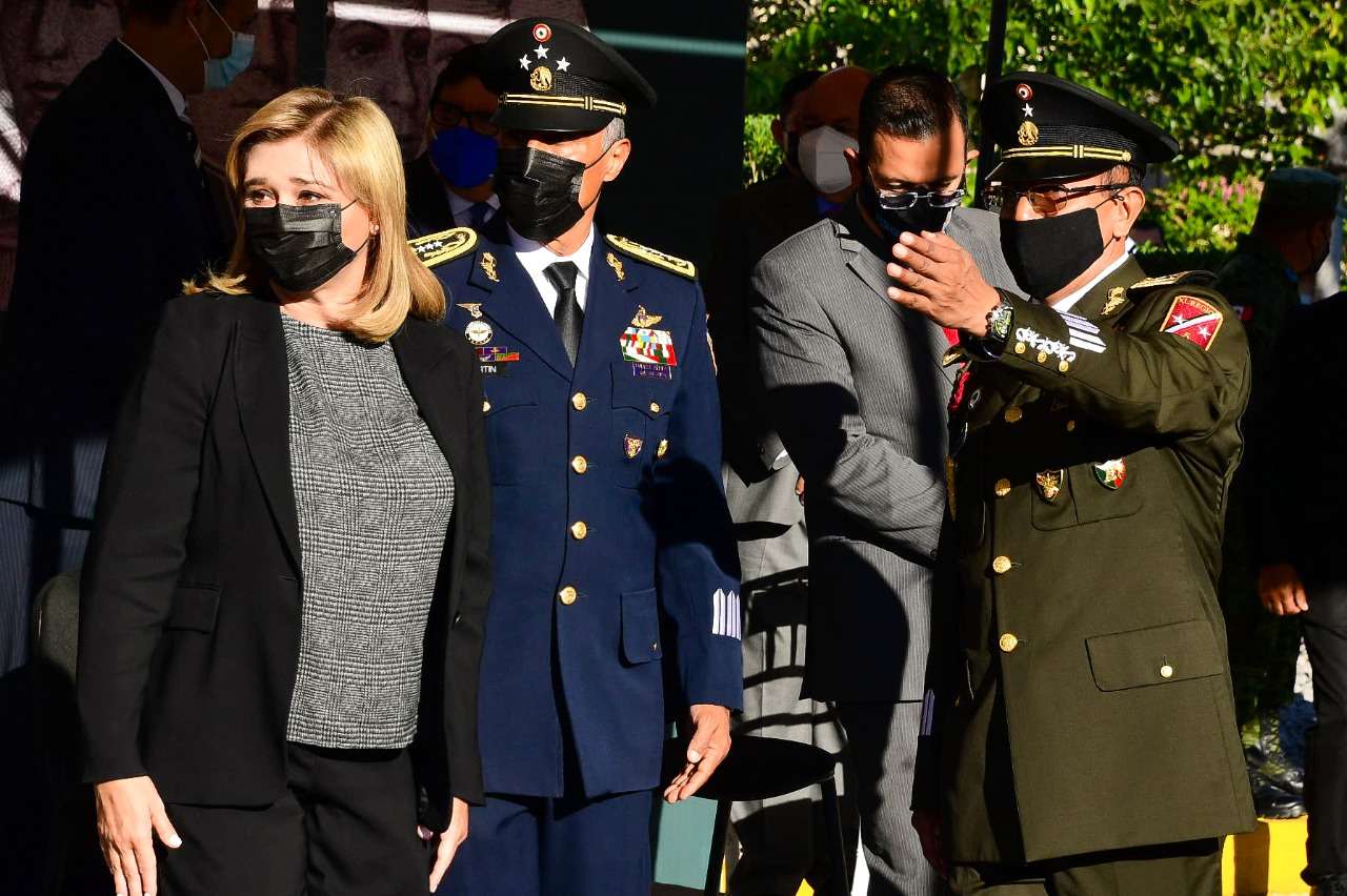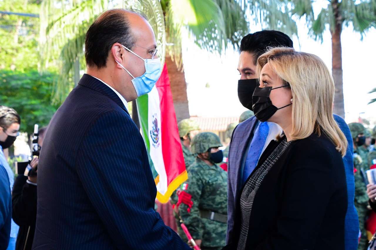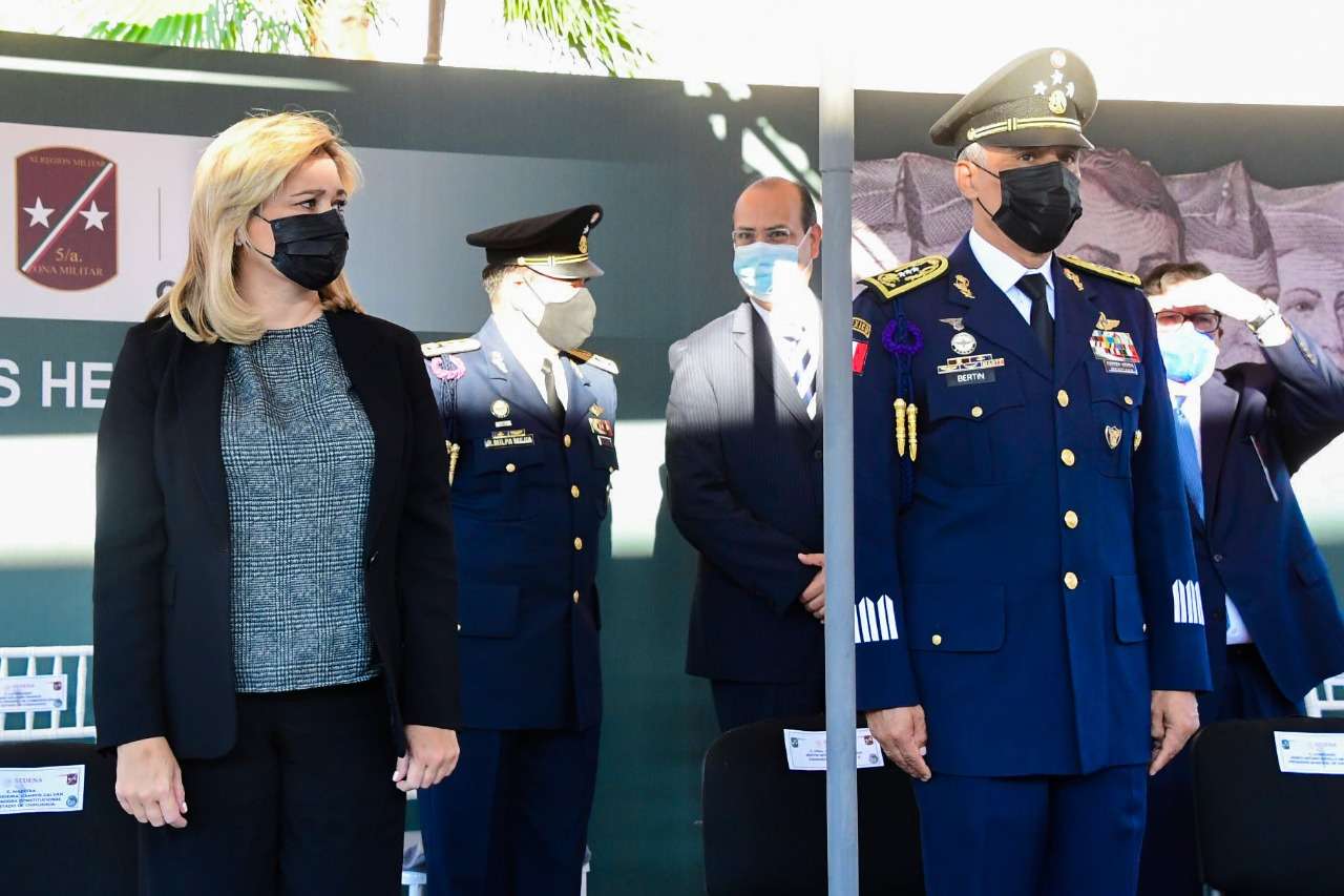 Chihuahua.- En el marco del 174 Aniversario de la Gesta Heroica de los Niños Héroes de Chapultepec, la gobernadora Maru Campos Galván y el General Federico Eduardo Solórzano Barragán, comandante de la 5/a. Zona Militar, acompañados por autoridades civiles y militares, rindieron guardia de honor y colocaron una ofrenda floral.