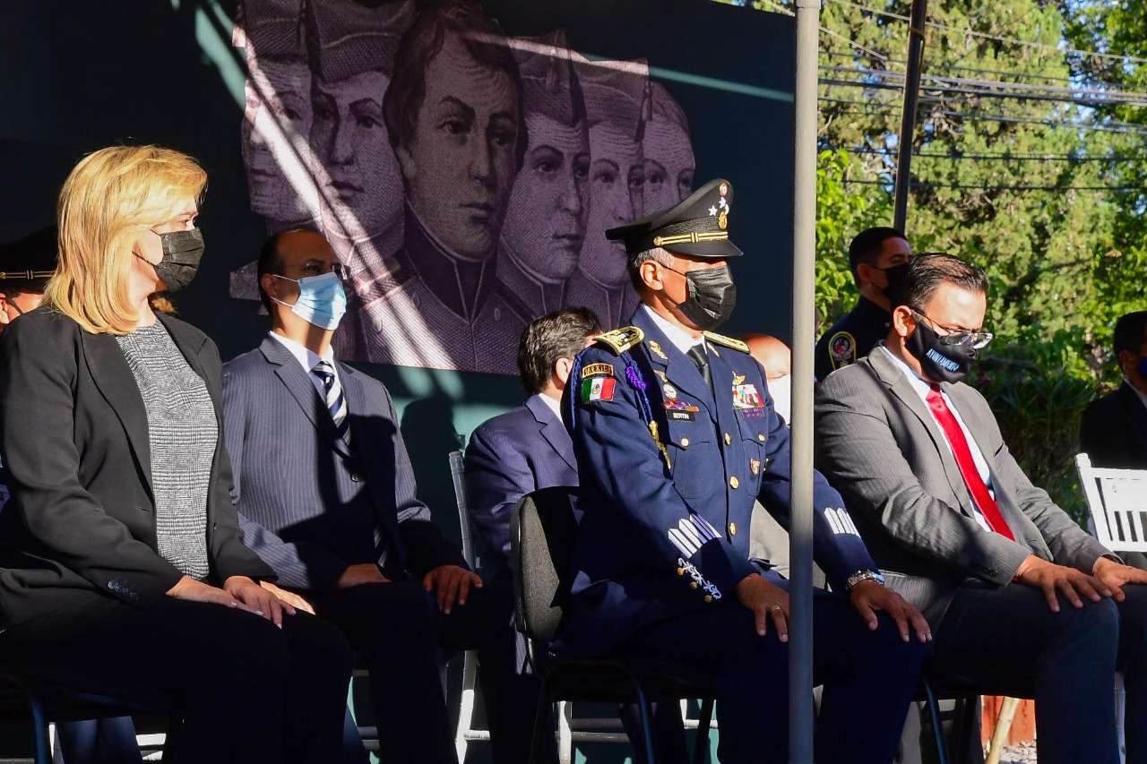 Las y los participantes del evento cívico, llevaron a cabo los honores al Lábaro Patrio, entonaron el Himno Nacional Mexicano y el Himno del Heroico Colegio Militar.