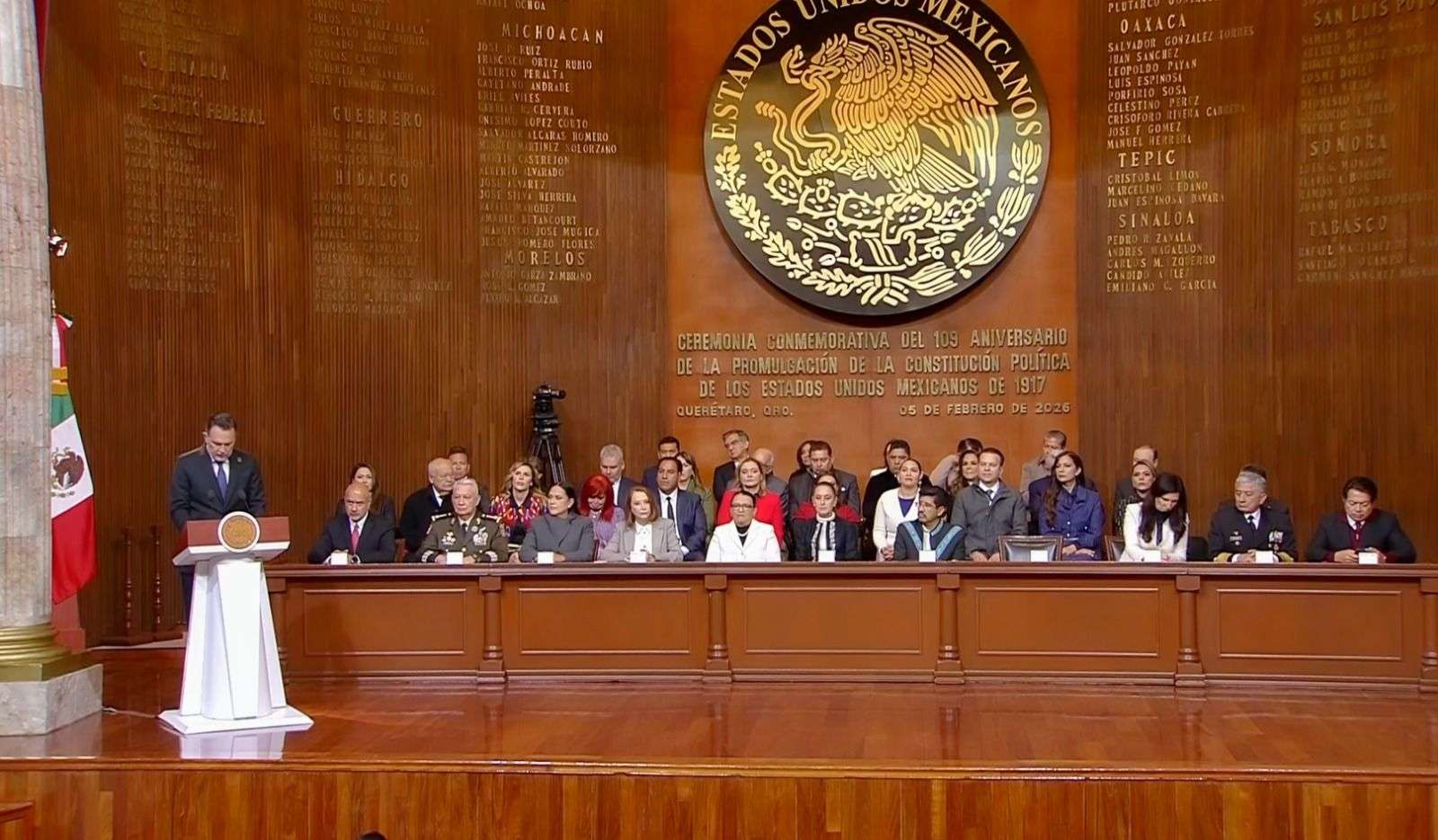 Querétaro.- La gobernadora Maru Campos asistió a la ceremonia conmemorativa por el 109 Aniversario de la Promulgación de la Constitución Política de los Estados Unidos Mexicanos, que se llevó a cabo en la ciudad de Querétaro.